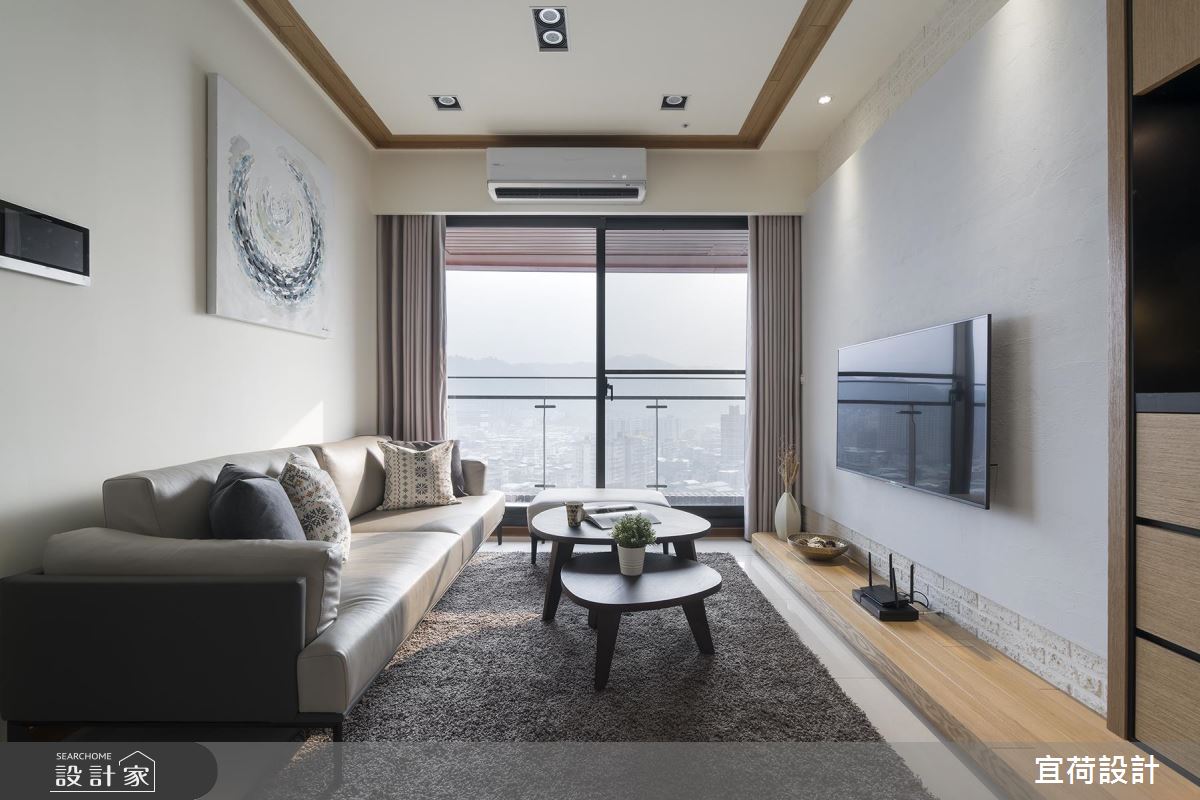 客廳天花板以木紋飾邊,框定格局範圍的同時,也創造了空間的立體度。