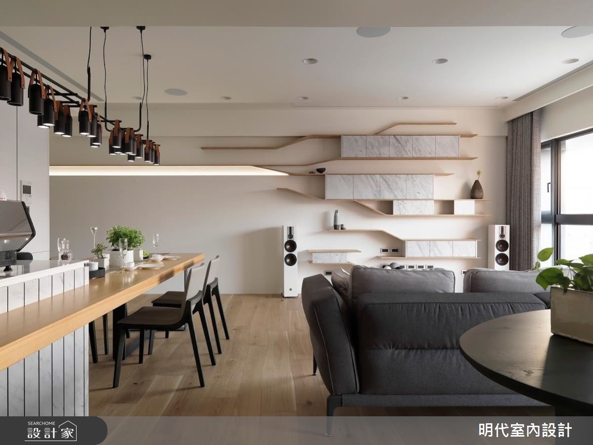 此案居住著一家五口的成員,利用現代風定調,大量白色調成為居家空間的基底,透過溫暖的木紋肌理調和,伴隨敞朗日光的蔓延,營造出明亮、乾淨且溫馨的生活氛圍,一家人平凡的日常正在上演。