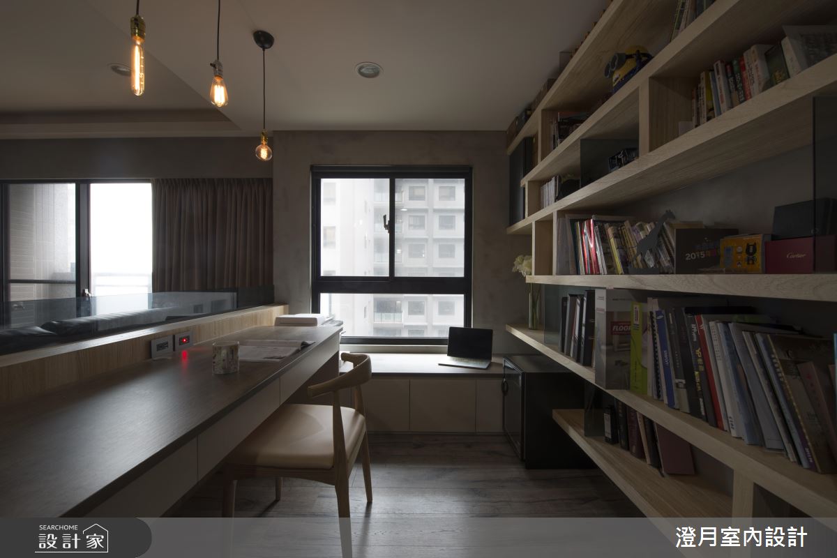 整體空間利用很多層板設計,陳列出屋主成長過程中、不同時期的收藏;書房壁面更設計大面積的開放書牆,滿足大量藏書,並以不同顏色的玻璃造型做妝點,讓視覺更添變化。