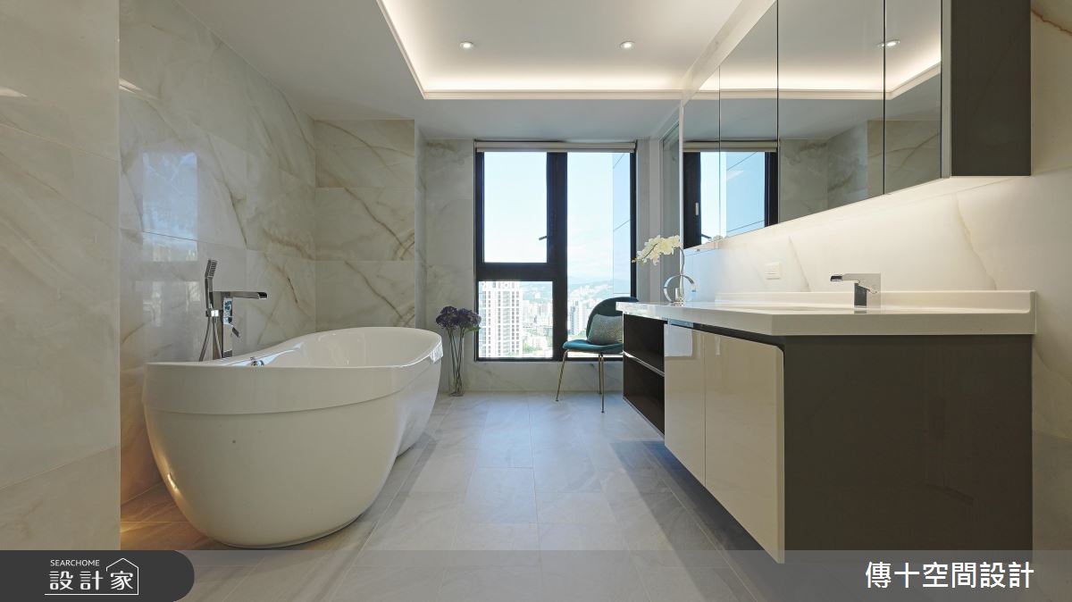 浴室留有偌大的空間感,並擺放獨立浴缸增添氣勢,在順暢自在的動線之下,無論泡澡或淋浴都能更加便捷,享受不被打擾的紓壓寧靜!