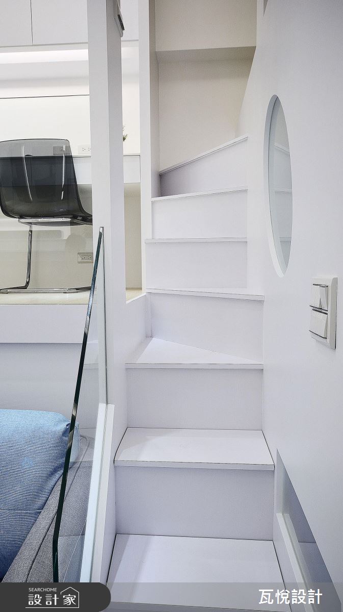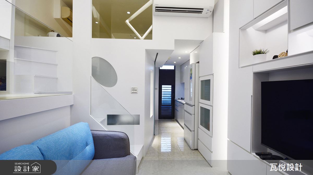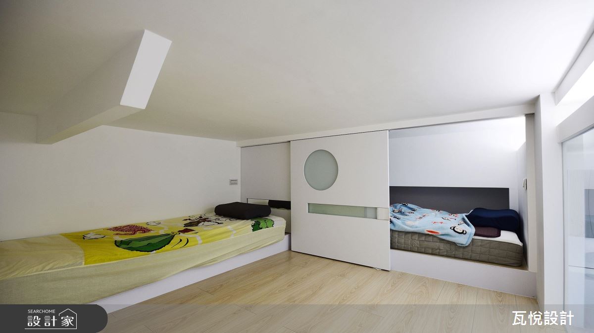 8 坪的現代風小宅,也能擁有三房一衛浴的格局?設計師透過錯落樓層的方式,依序安排客廳、書房和臥房,讓兩大兩小能夠住得既舒適又充滿機能性。