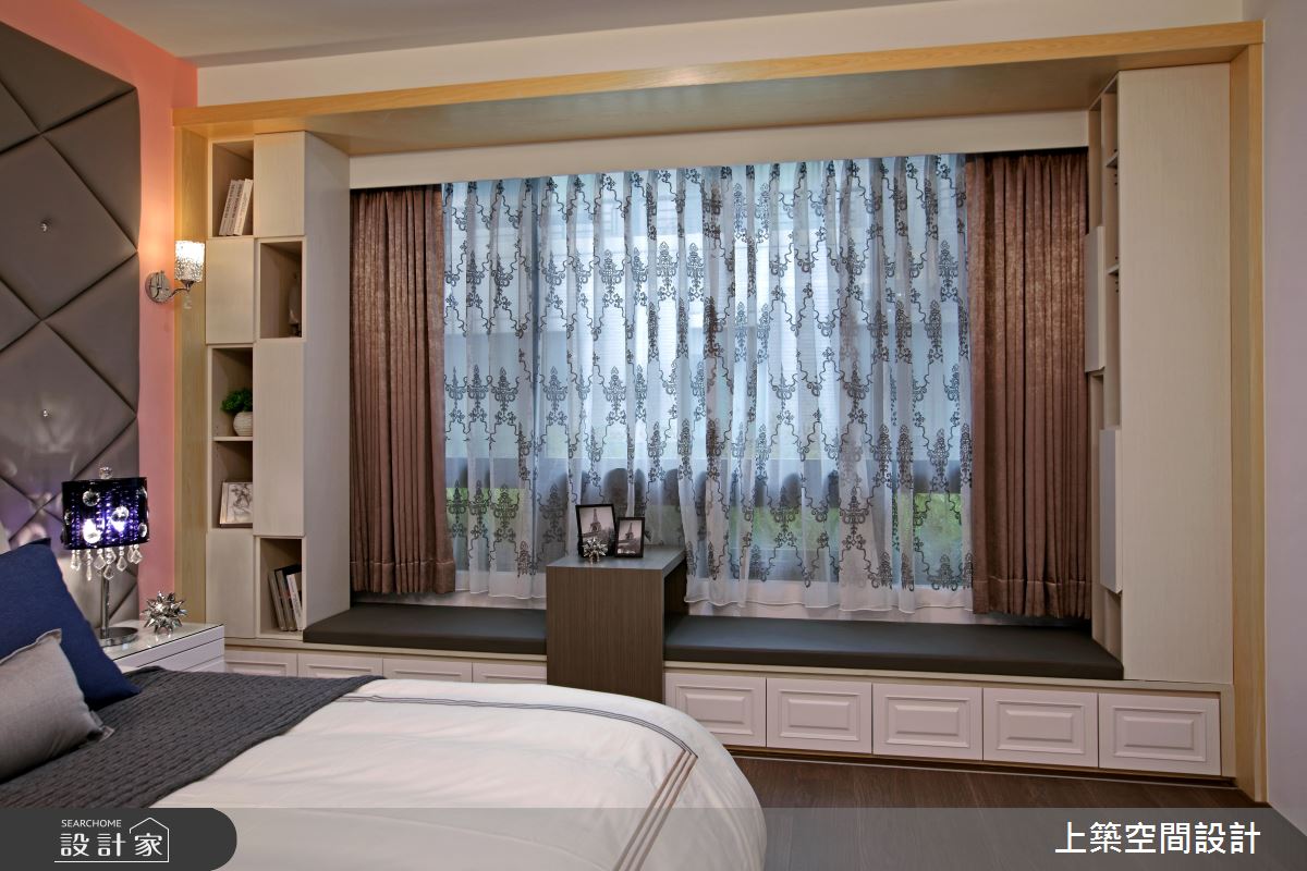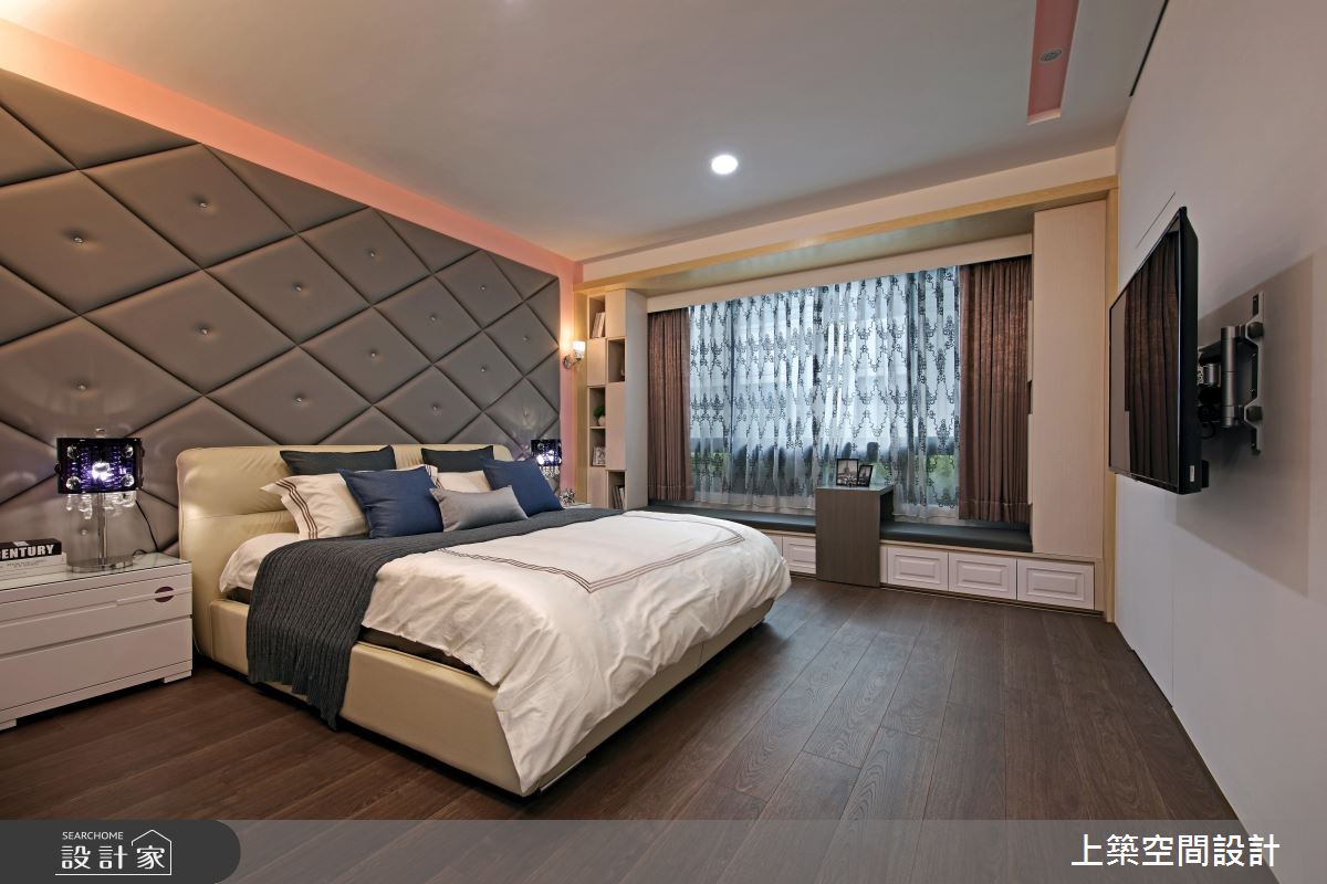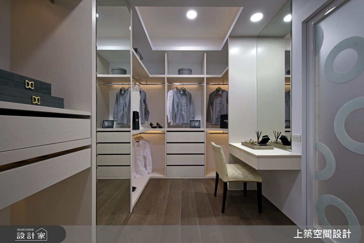 臥房格局寬敞機能完備,緊鄰窗邊處安排臥榻休息區,發揮戶外自然景觀優勢,加乘私領域休閒享受,另外打造一間夢幻更衣梳妝室,豐富的收納規劃,體現從風格到機能上,完整表達的奢華生活態度。