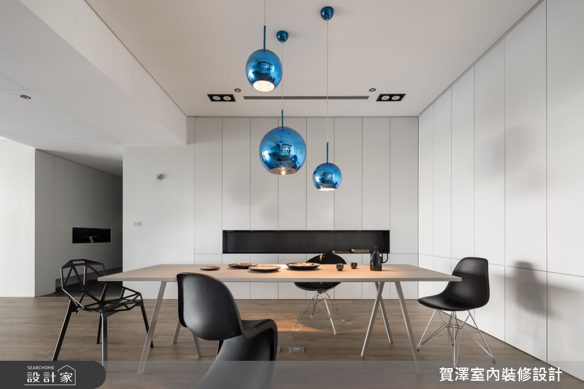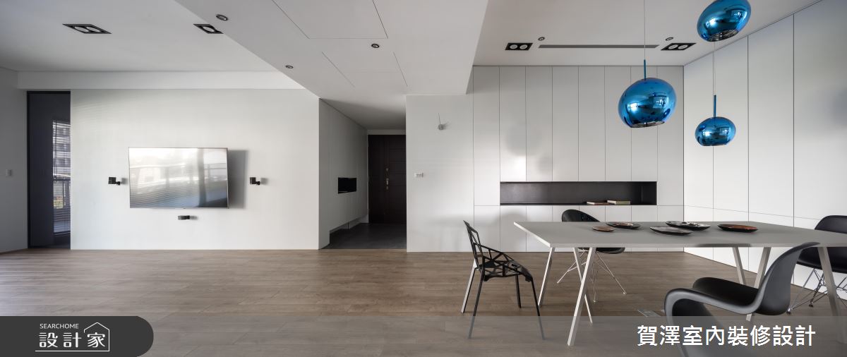 100 坪簡約風三代同堂宅,由白色主導視覺空間,並丟掉傳統思維,換上具有衝突美的現代吊燈、設計感十足的流線型單椅,點綴白色畫布。一兼機能、二顧藝術裝飾的巧思,簡鍊有看頭,體現設計總監屋主極簡摩登的生活品味!