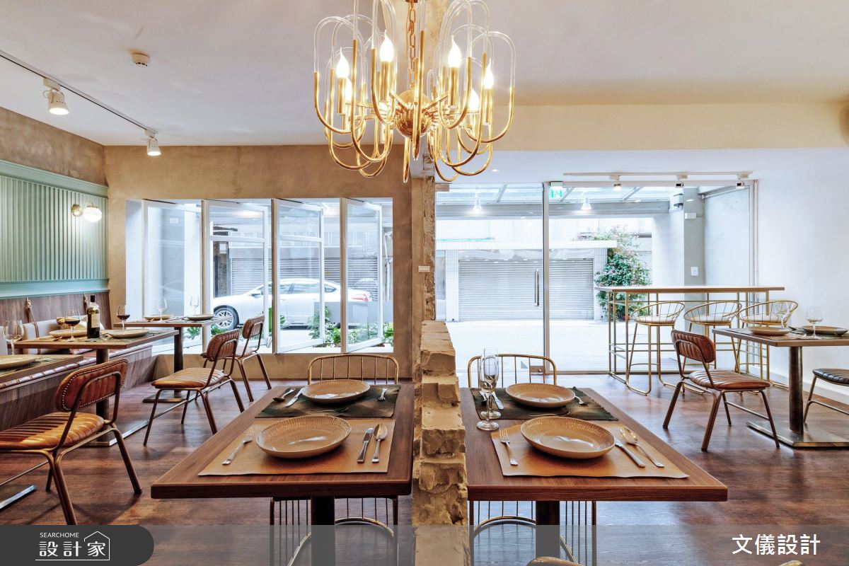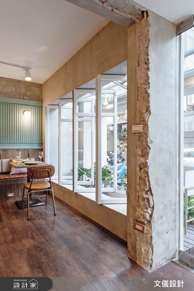 沙發區旁,一大面白色特殊推窗設計,讓顧客用餐時與自然氣氛零距離,與入口梯坪前的小花園的組合,更成為一處過路行人紛紛駐足欣賞的愜意端景畫。