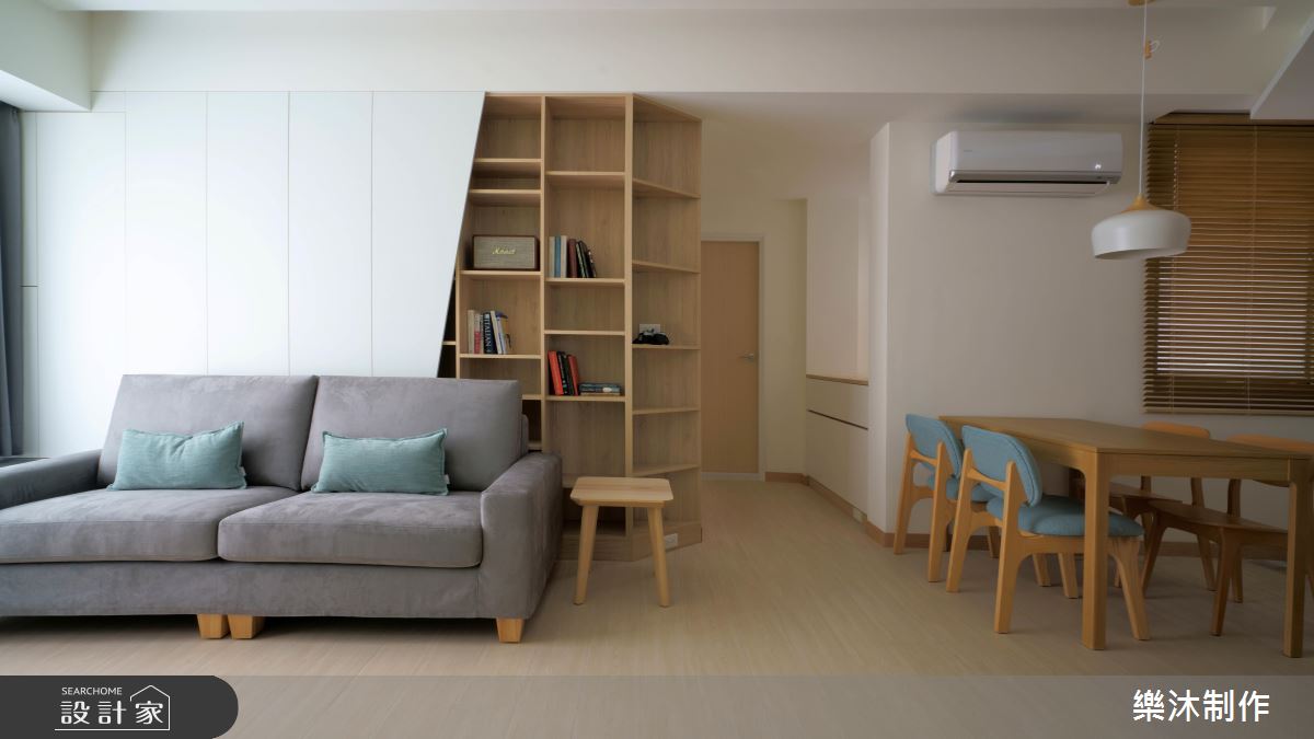 35 坪北歐風老屋,打開公領域界線後,充沛日光傾注室內,輔助空間尺度,帶來無限延伸的視野感受,並發揮巧思在一片木與白的溫暖簡約中,抹上恰如其分的童趣色彩,象徵著小小孩加入 2 人世界的開朗氛圍!