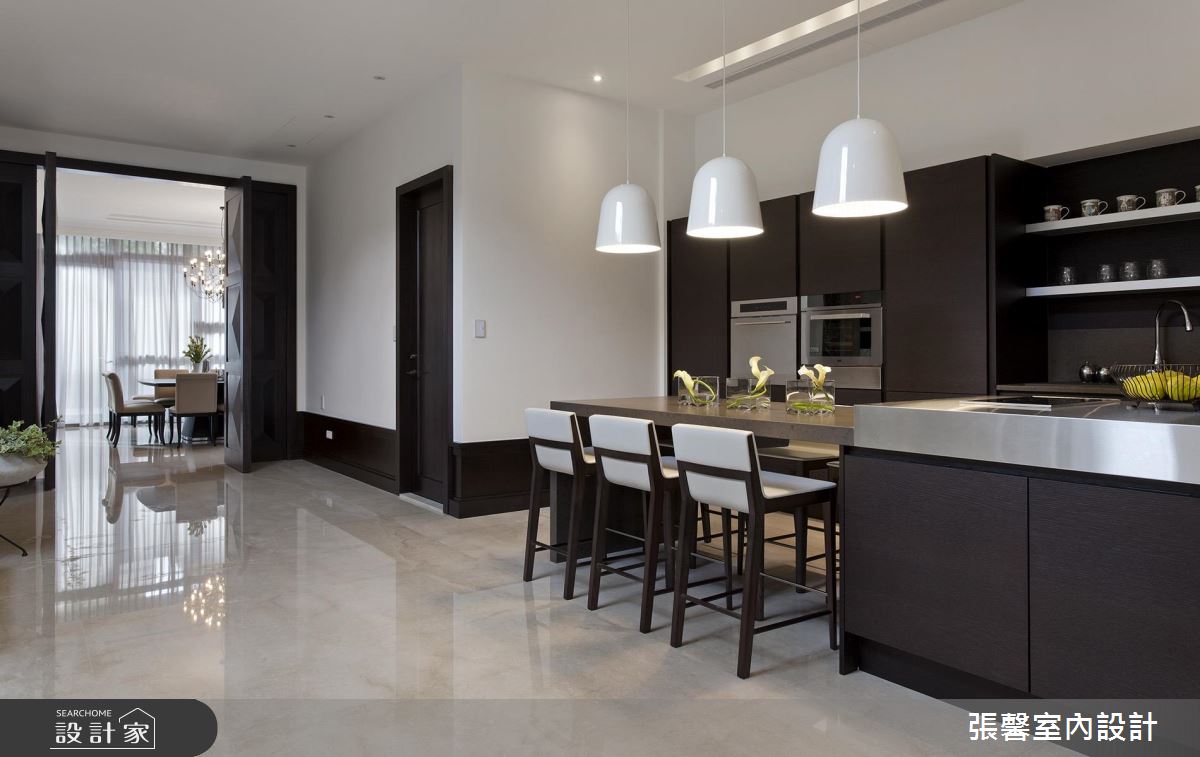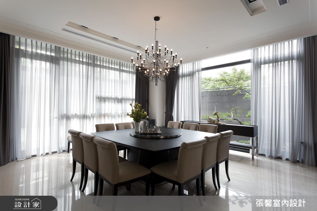 170 坪的混搭風透天別墅,在考量屋主夫妻與兩名小孩的生活需求後,整體空間以棕白兩色的視覺對比,依序安排各個居家格局,營造出典雅又休閒的大宅氣度。