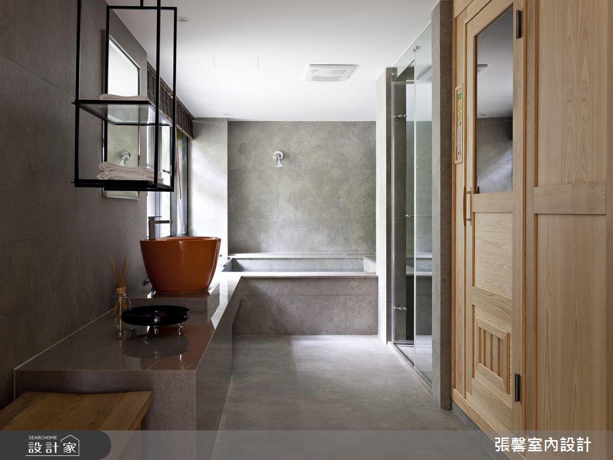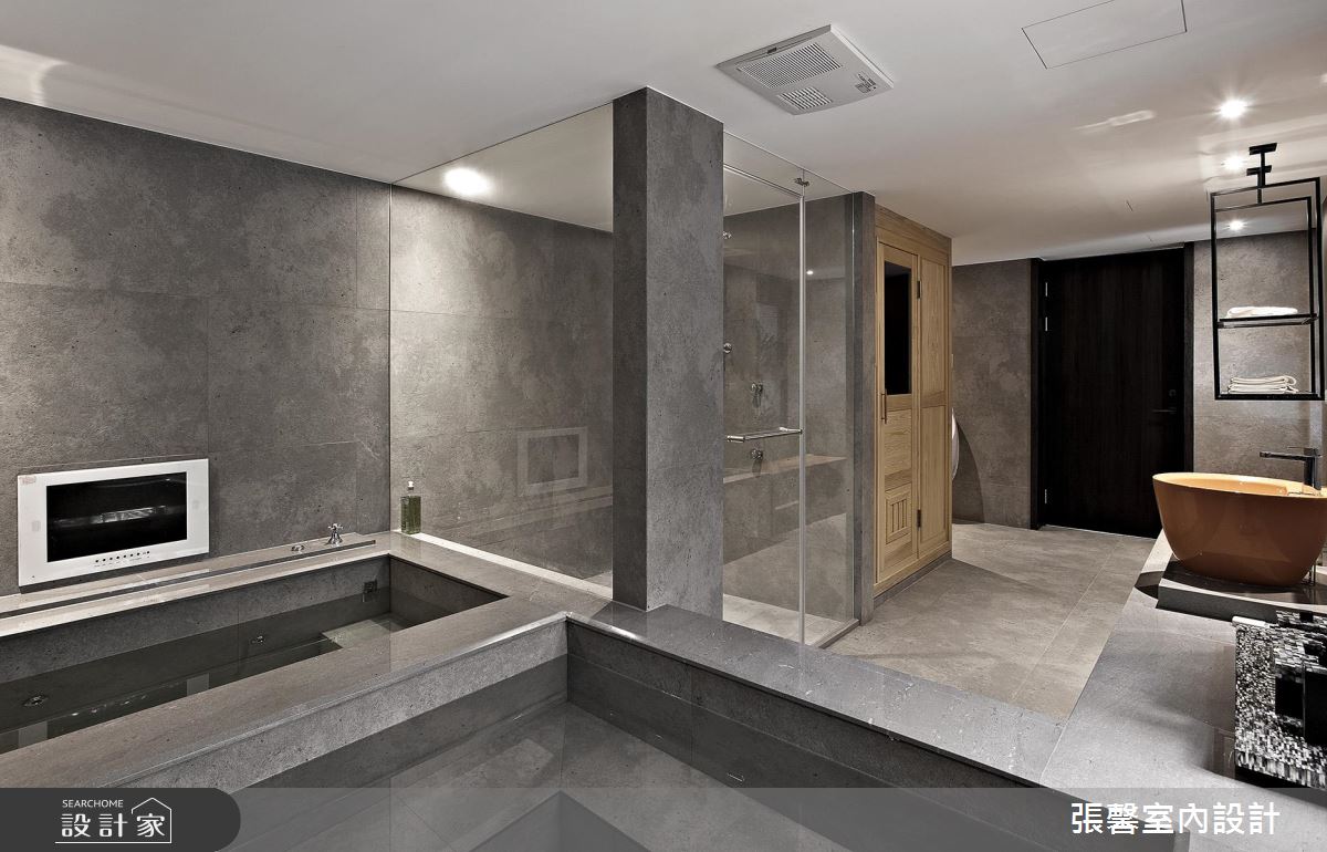 餐廳特別選擇對開式的造型木門,保持用餐環境的隱蔽性,讓聚餐時光不會受到外界的干擾。浴室則以日式風呂為設計概念,從地坪到牆面的水泥質樸感,讓人一進到裡面就感到身心靈的放鬆,而且還規劃了烤箱設備,令人在家就能體會三溫暖的舒適。
