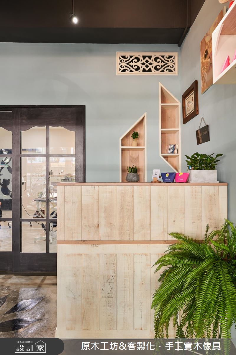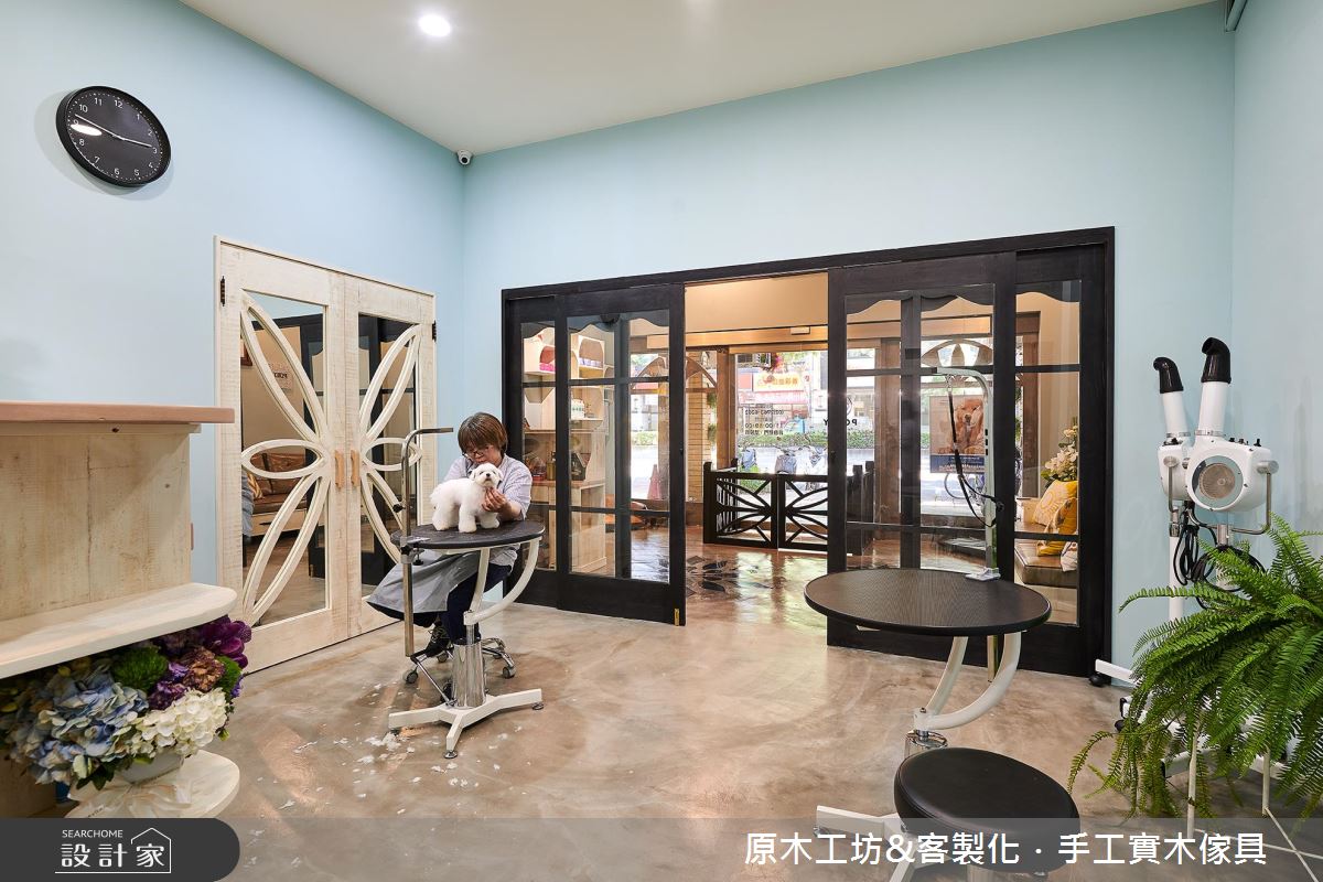 為了帶給毛小孩們一個健康、無毒且溫馨的美容環境,藉由原木雕花語彙妝點一室,淺藍色調的壁面與開放層板的規劃,營造滿室活潑、愜意的鄉村風尚,讓到訪的客人也沉浸在悠然的氛圍裡,感到非常放鬆。
