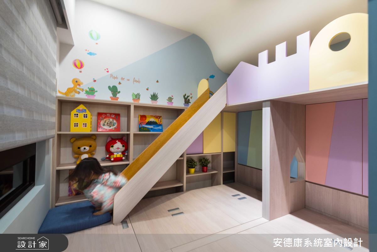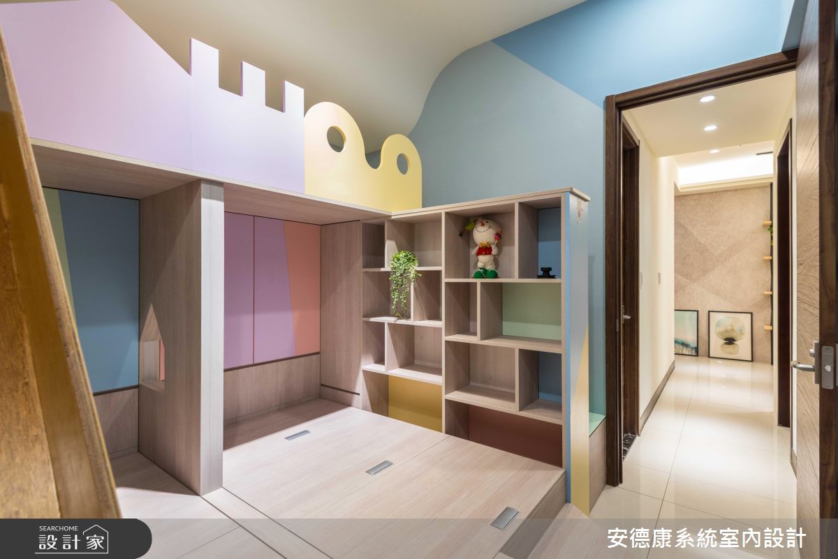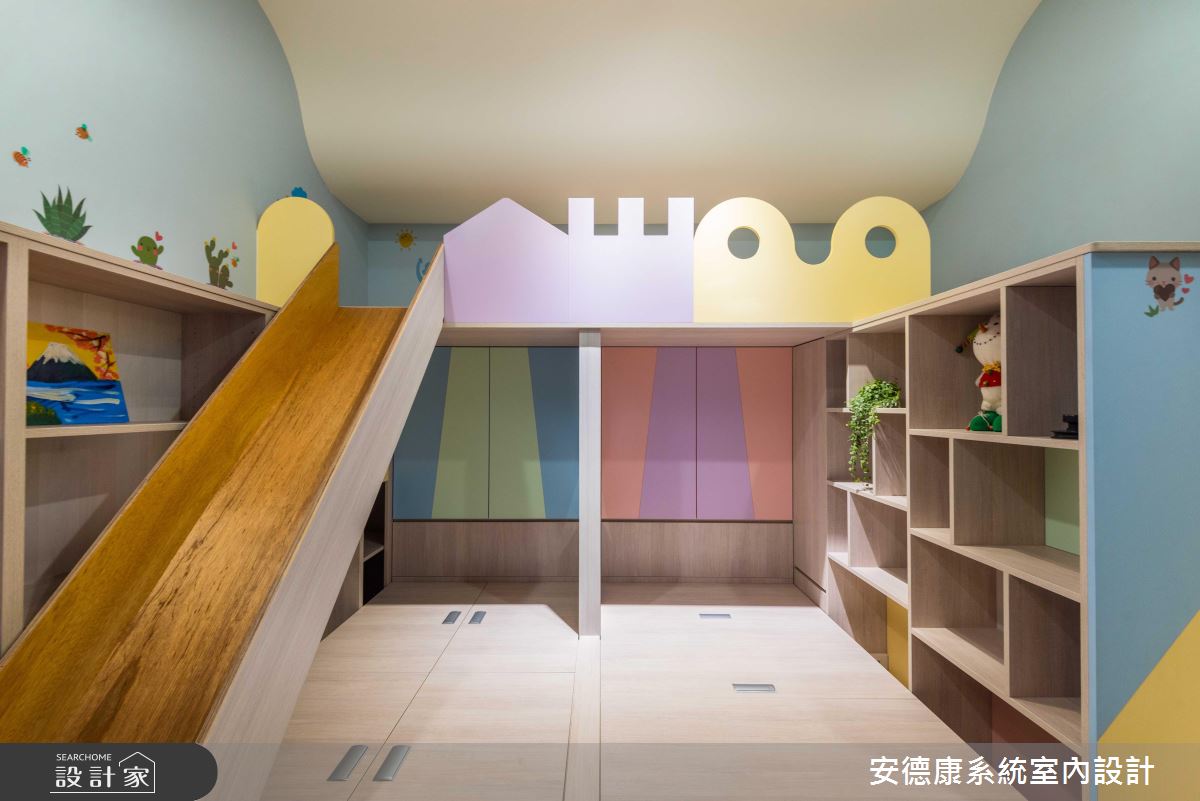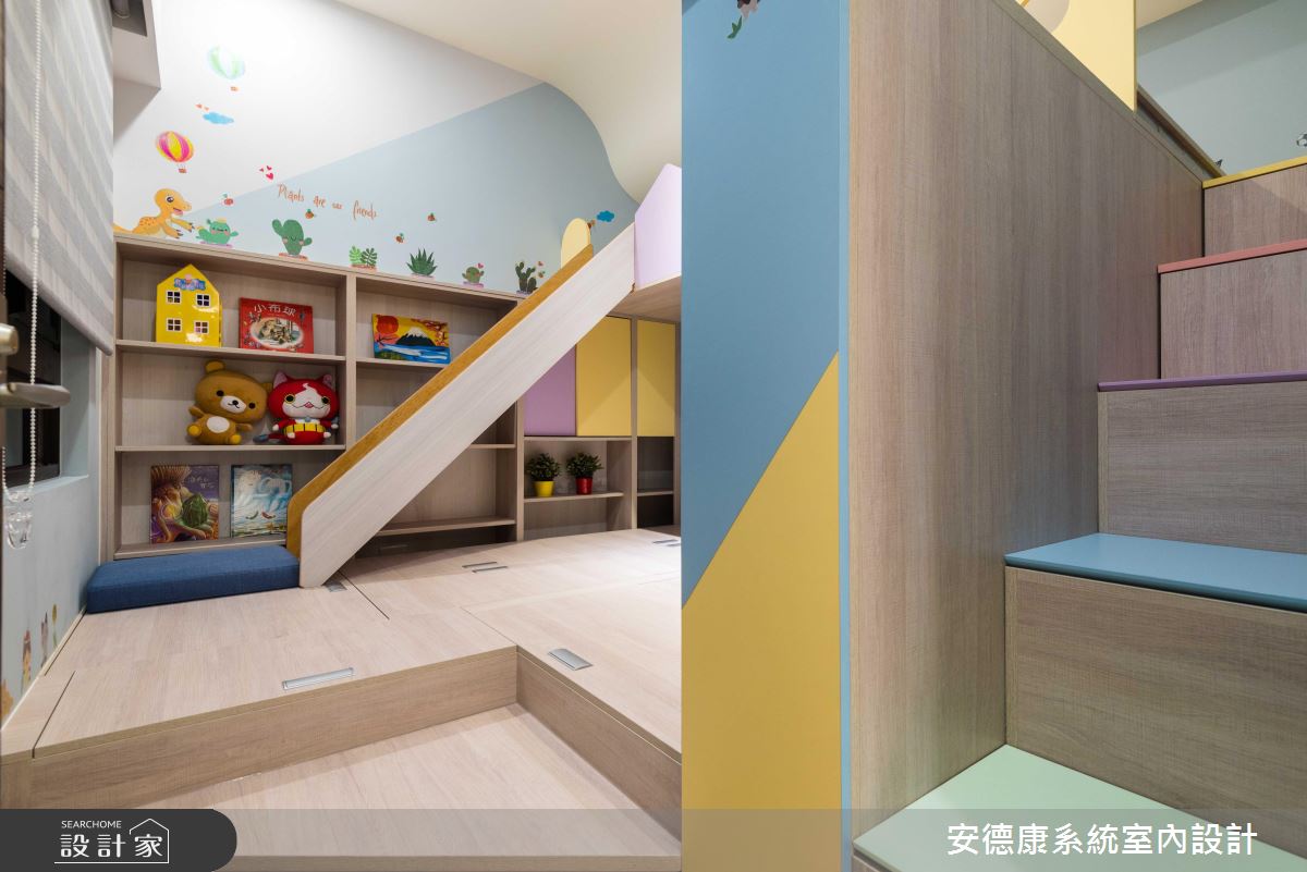 除了遊戲功能與繽紛色彩外,兒童房的地坪和立面都藏有豐富的收納,讓孩子的眾多物品能被妥善儲藏。
