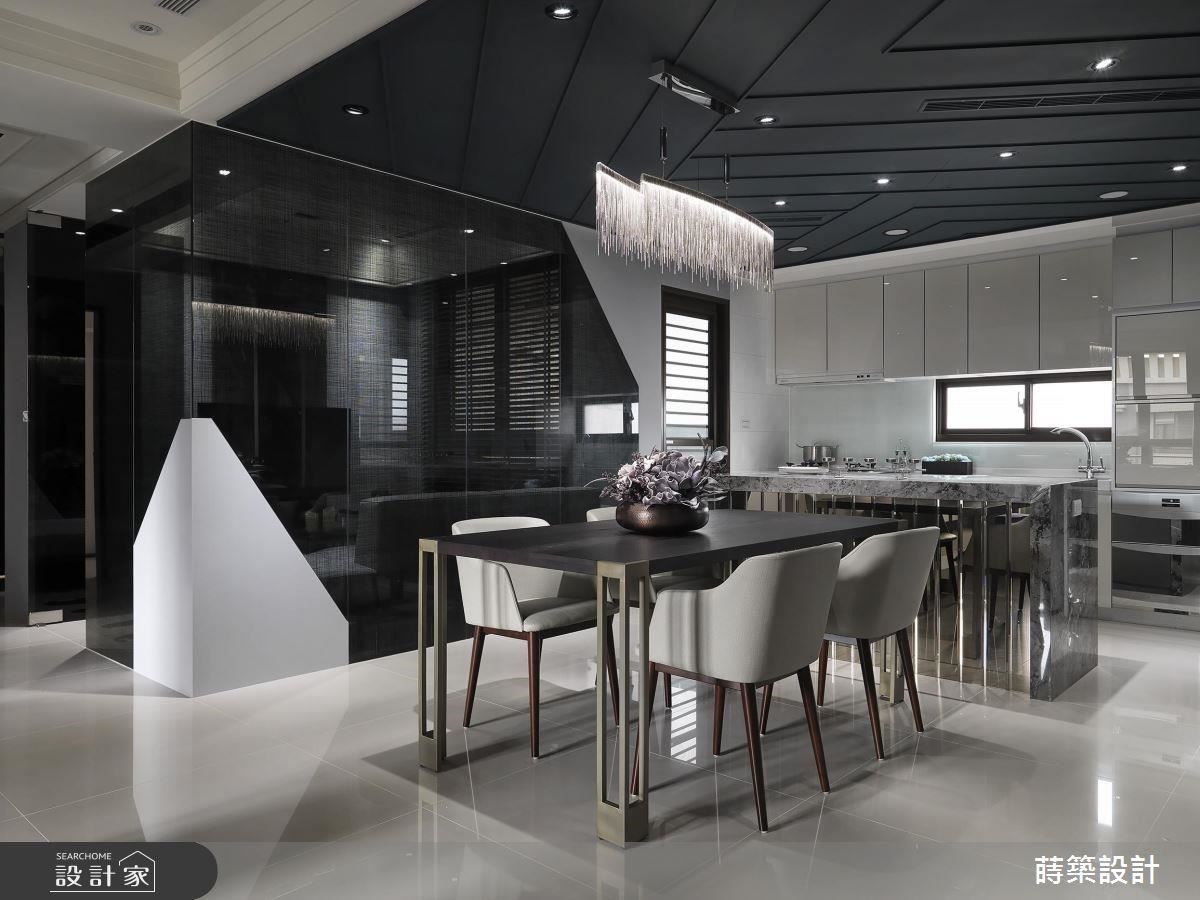 廚房天花以人字拼貼的黑色線板設計,烘托時尚簡約格調。