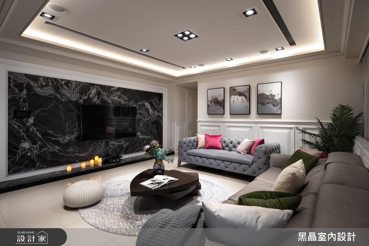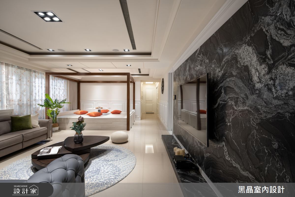 屋主與愛貓一起生活的 53 坪空間,以白色鋪敘浪漫印象,遊走櫃體的線板、烤漆鐵件,則呈現新古典風精隨;另外,設計師分別在公領域加入峇里島風情和室、私領域客製化華麗主臥,表現與眾不同的新古典居家。