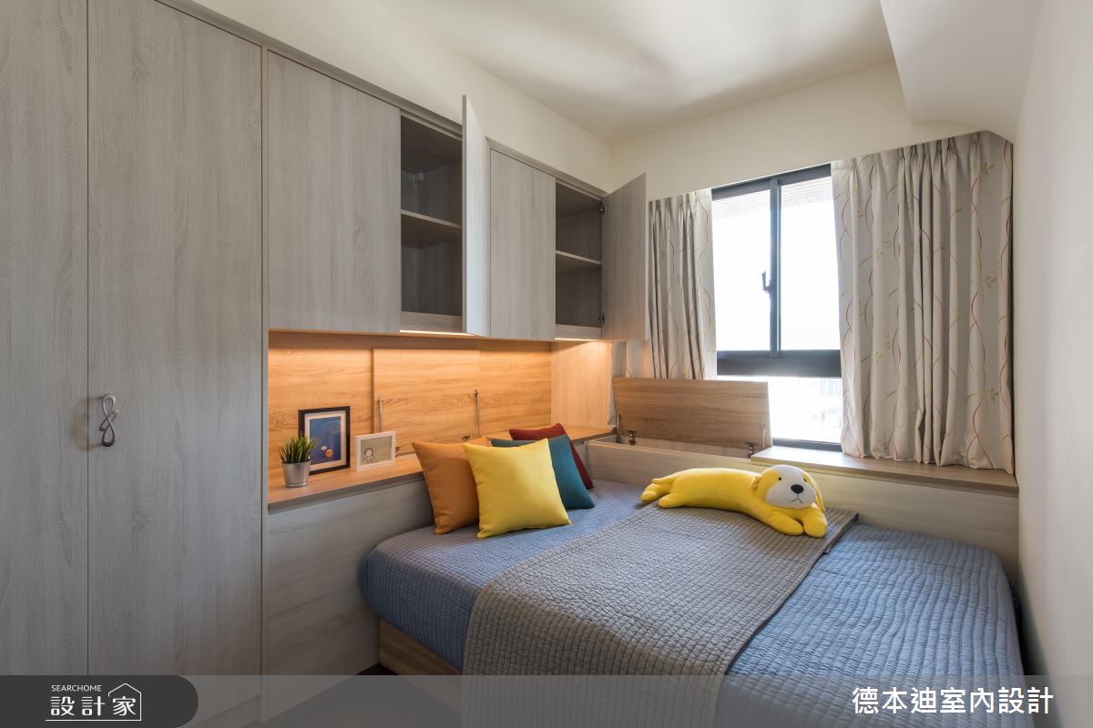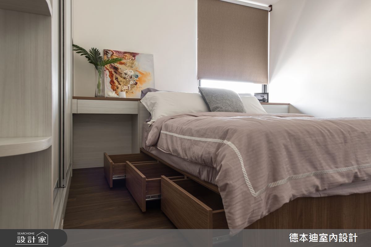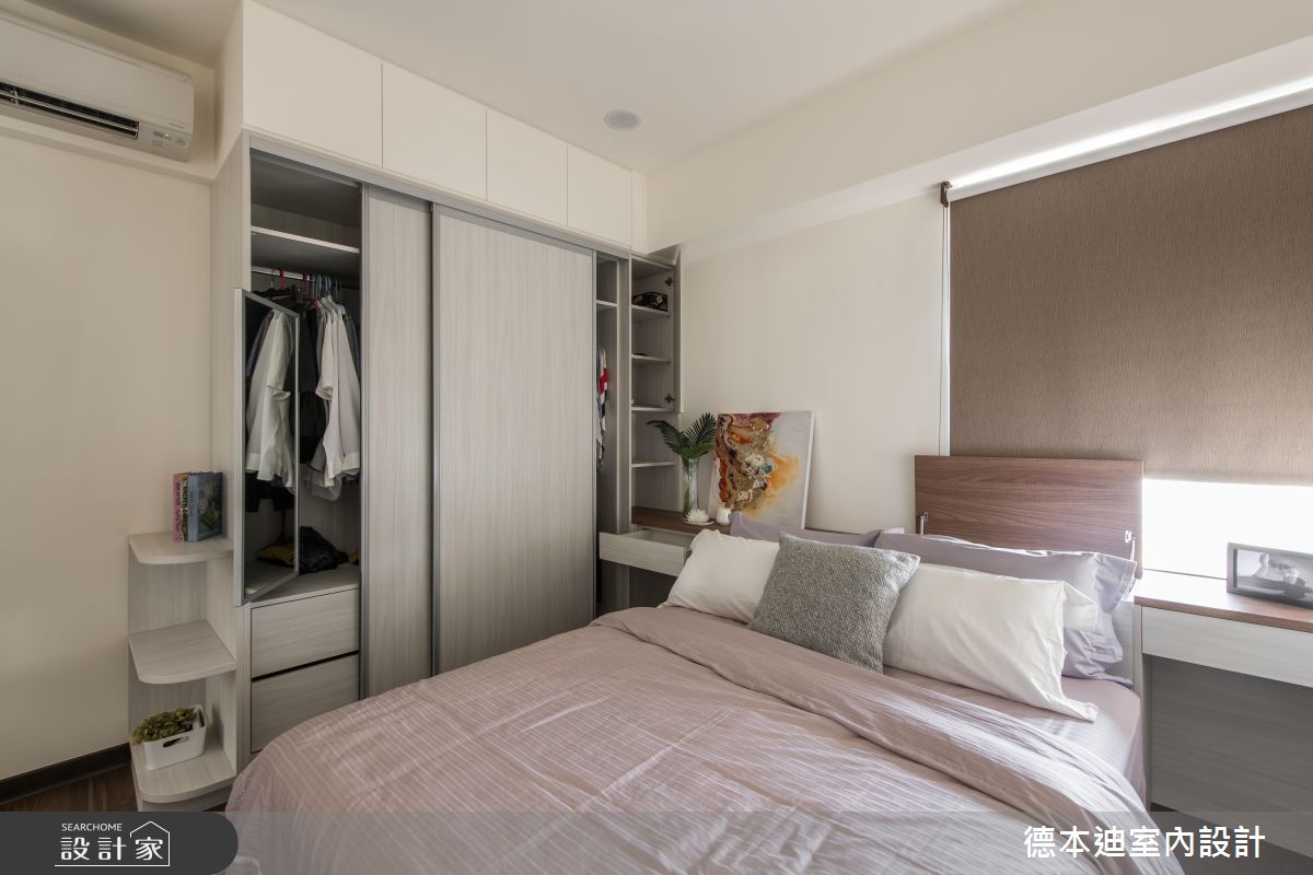 私領域每個房間內都存在結構大樑缺陷,透過床頭櫃設計,化解壓樑風水,更根據各臥房主人需求,規劃海量且個性化的收納層架。