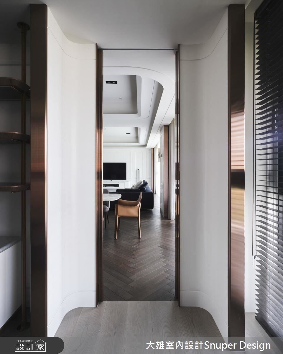 林政緯總監以細作精工的嚴謹態度,運用大理石、鍍鈦、木皮、線板、玻璃交織國際品牌的精品質感,而藏在背後的訂製工藝,更大至天花勾勒的場域,小至櫃體邊角,都擁有細緻滑順的弧線造型,完滿展現圓弧語彙的古典精神。