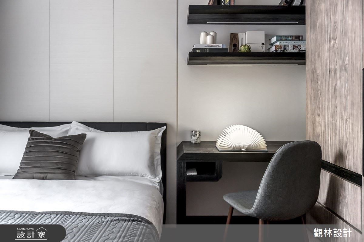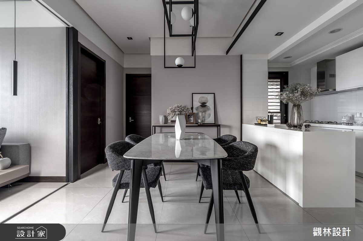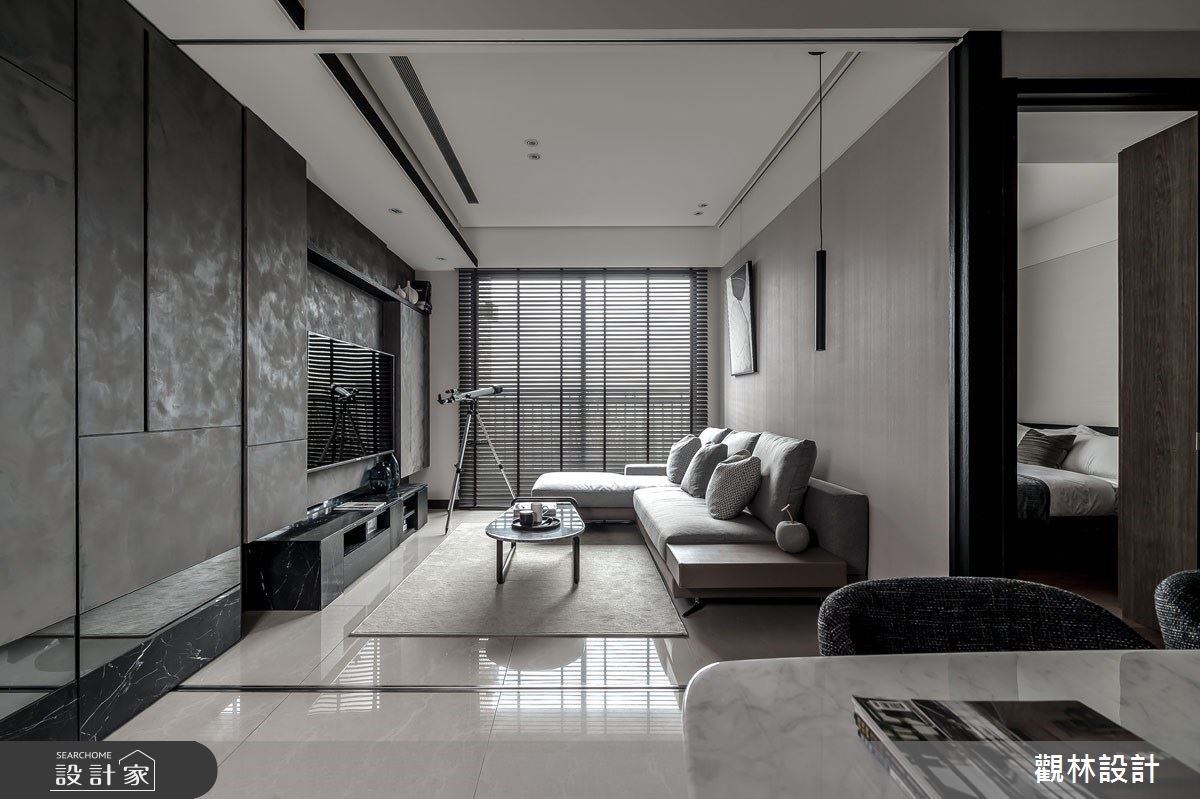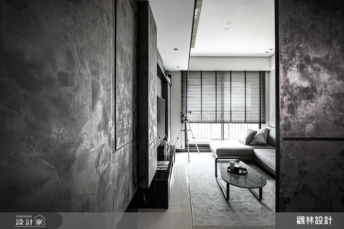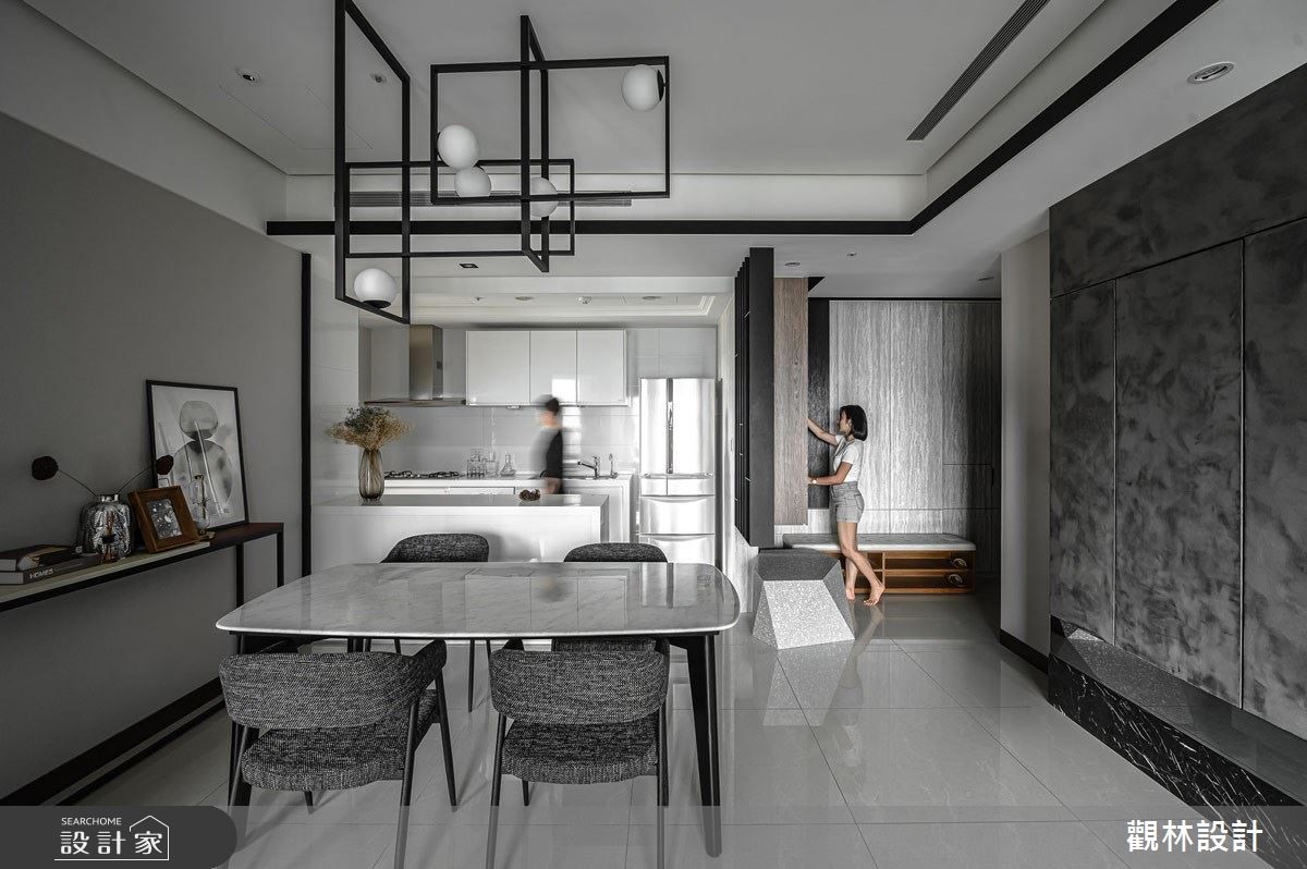 現代都會上班族群由於房價過高,多以租房取代買房,而城市人口密度逐年增加,同時也造成居住坪數受限。公寓住宅在有限的坪數下,如何有效利用空間?租屋族群如何過有品質的現代生活?因此觀林設計在此案的核心價值便是「空間放大最佳化」、「公私領域彈性化」,讓居住者能夠享有舒適愜意的家庭空間,同時考量到承租者彼此間的生活型態可能略有不同,因此在客廳與餐廳交界之處,設置拉折門作為彈性空間的應用,可以一人在客廳慵懶觀賞電視、另一人在餐桌愜意閱讀,打造多元型態的生活樣貌。