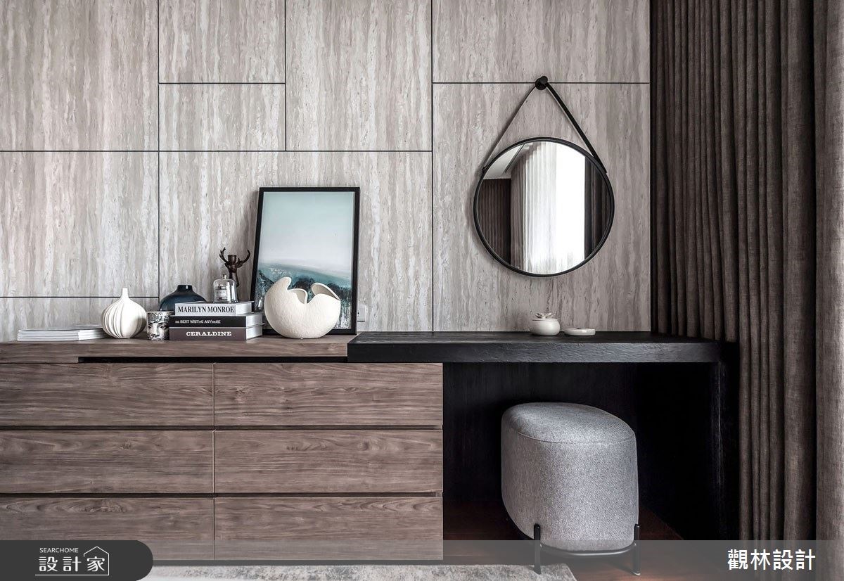 為解決空間坪數上的受限,以都會租屋客為定位,替租客規劃2+1房的空間,設計概念以「對稱、秩序、共享」為主軸,對稱的線條以秩序的律動延伸家中的深度,在工法上別出心裁運用堆疊的塗漆規劃客廳公共空間的主牆,繁複的工料呈現油畫塗抹的藝術感,搭配空間的對稱線條、色塊區隔打造空間的「諧、靜、謐」,以秩序、律動詮釋現代生活的和諧美感。