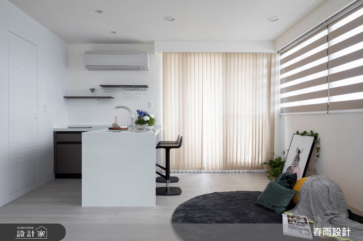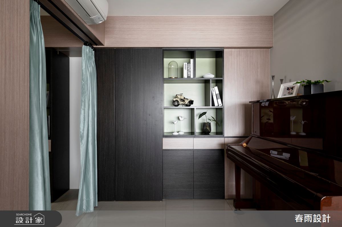 隱藏在鋼琴旁的一扇滑門後,減少踏階數量、增加面寬的階梯向上,是一處老屋特有的閣樓空間。被改造成為寬敞的休憩區中備妥L型輕食吧台與陽光臥榻,還兩道暗門是半套衛浴以及實用的儲藏室。原本飽受壁癌與白蟻雙煞之苦的老屋經過改造後變身為迷人的年輕空間,每位家庭成員不僅能享受專屬於自己的寢居,也能於客廳共享快樂時光。