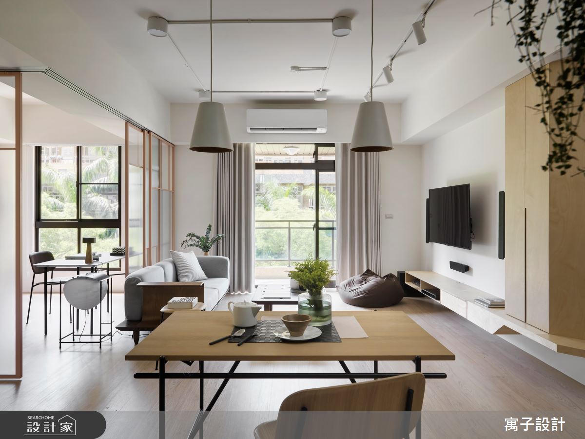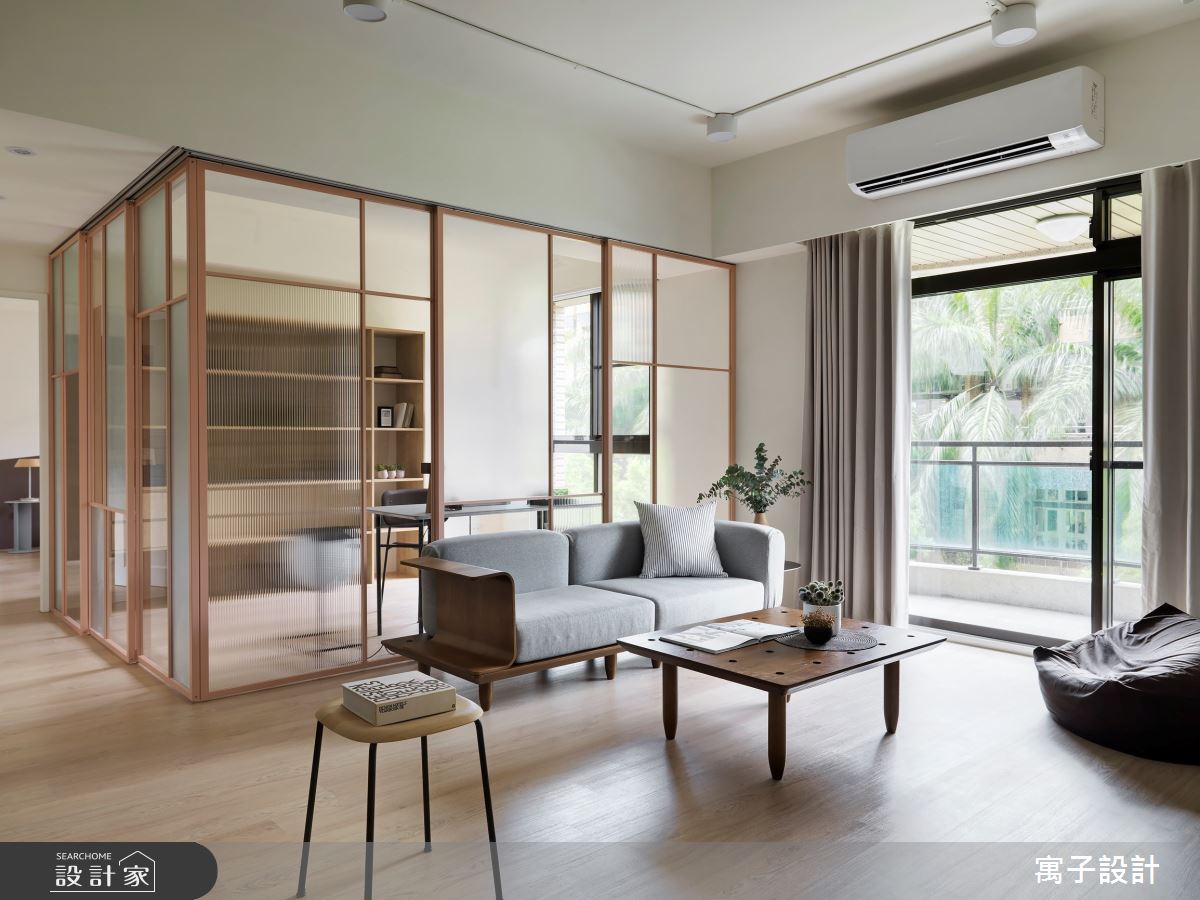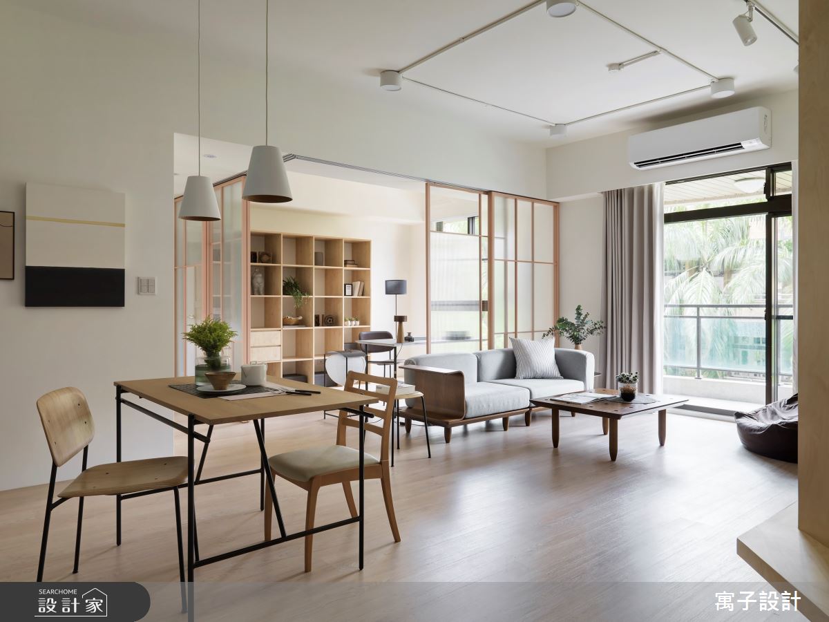 Home Data是否曾想像過,一個愜意悠閒的午後,配上一杯熱拿鐵,在家裡依傍著滿窗的綠意自然,隨手翻讀書冊的生活畫面?此案便是以這樣自在、隨興,又帶點慵懶的生活感為設計核心。主空間捨去水泥隔間牆,以活動式的木格柵拉門打通了客廳與書房的界限,同時釋放兩邊採光,不僅延攬進更多綠意,全室視野更加開闊明亮,移動格柵門也增添了空間使用的彈性。