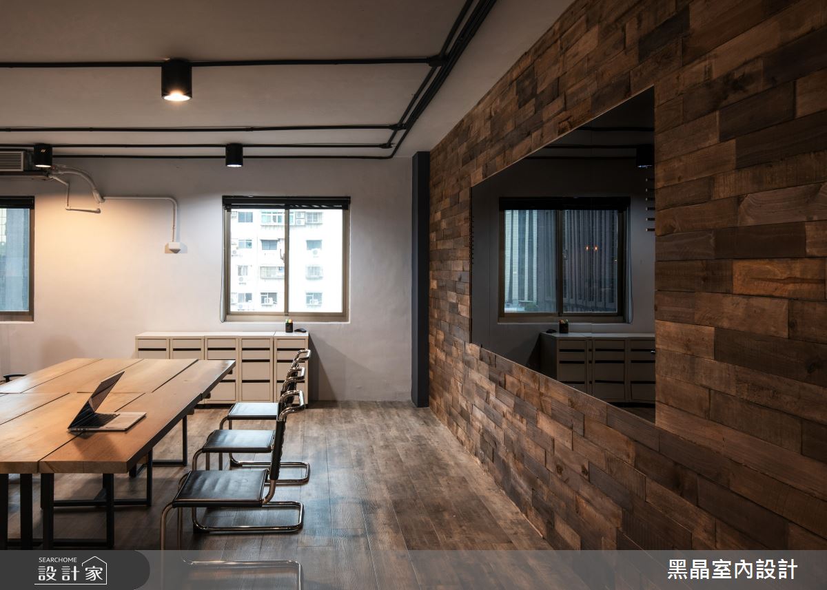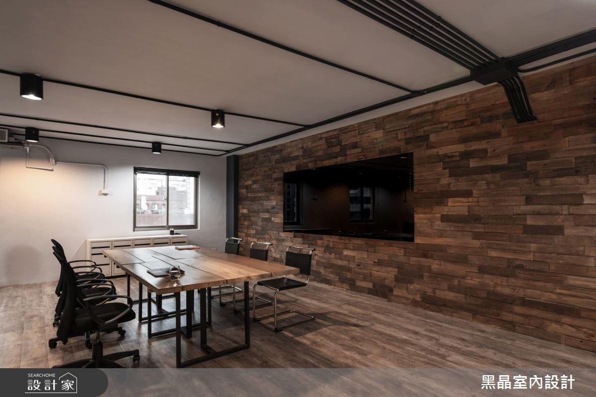 平時常流連走動的茶水間設計也別出心裁,設計師使用特殊壓紋塑膠地板,並在牆面漆上溫暖亮眼的珊瑚橘,與辦公區域做出劃分,用充滿溫度的療癒風格,讓每個打拼夥伴都能在此享有紓壓放鬆的環境。而需要集思廣益的會議空間則利用廢棄棧板拼接而成,搭配磁性黑色烤漆玻璃,充滿個性風的黑板告示牆,讓呆板嚴肅的空間更多了靈魂。擔心工業風太冷硬?整體大地色調搭配溫和的木頭質感,讓這裡也能擁有如家一般的溫馨自然。
