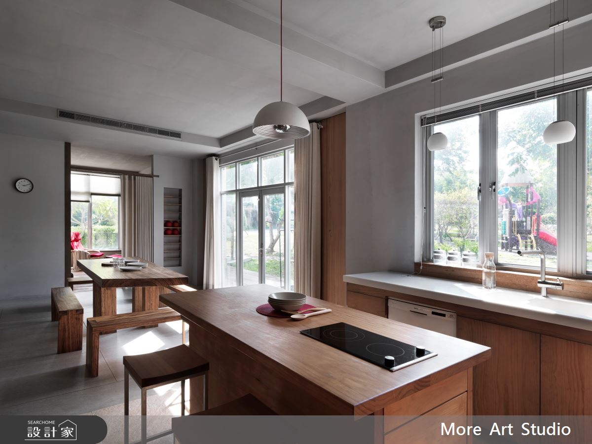 Home Data百坪的透天別墅,經由老屋改造而成,設計師秉持著「少即是多」的生活理念,以少量的質感家具,釋放空間尺度,注入灰階色調、結合染色實木,交織出自然無壓的居家氛圍,使人一回到家,身心靈便安定了下來。