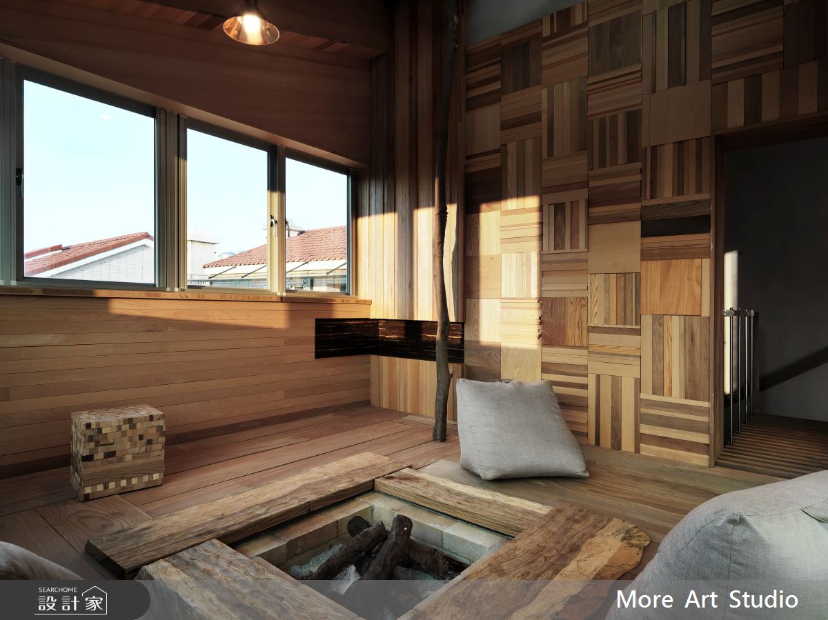 閣樓利用木紋拼接作為空間基底,清爽無壓的視線中,猶如度假小木屋般,伴隨傳統日式暖爐,以及天井帶來的純粹日光,空氣間散發的寧靜感,使人片刻都不捨離去。