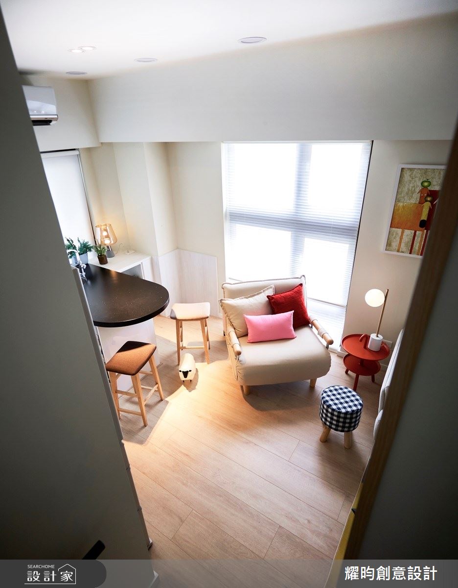 14坪的小家,經由設計師的規劃後,榨乾每分每寸、發揮最大坪效,善用夾層空間讓夫妻二人擁有2房2廳1衛的寬裕生活空間。屋主夫妻希望能擁有充足的收納空間、看來寬裕的場域、舒適的採光,因此在風格的設定上以北歐風為基調,多用米色、白色系為主體色彩,留下兩面採光良好的落地窗,鋪敘上溫暖的超耐磨木地板,並加入烤漆玻璃添加精緻質感,整頓好整體空間的體質,善用粉色、紅色、藍色等陳設裝飾豐富家的表情,讓小空間也能擁有國外IG上的高顏質!