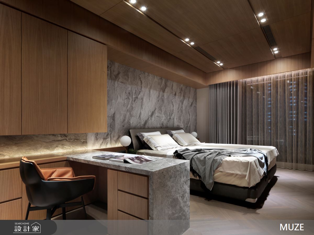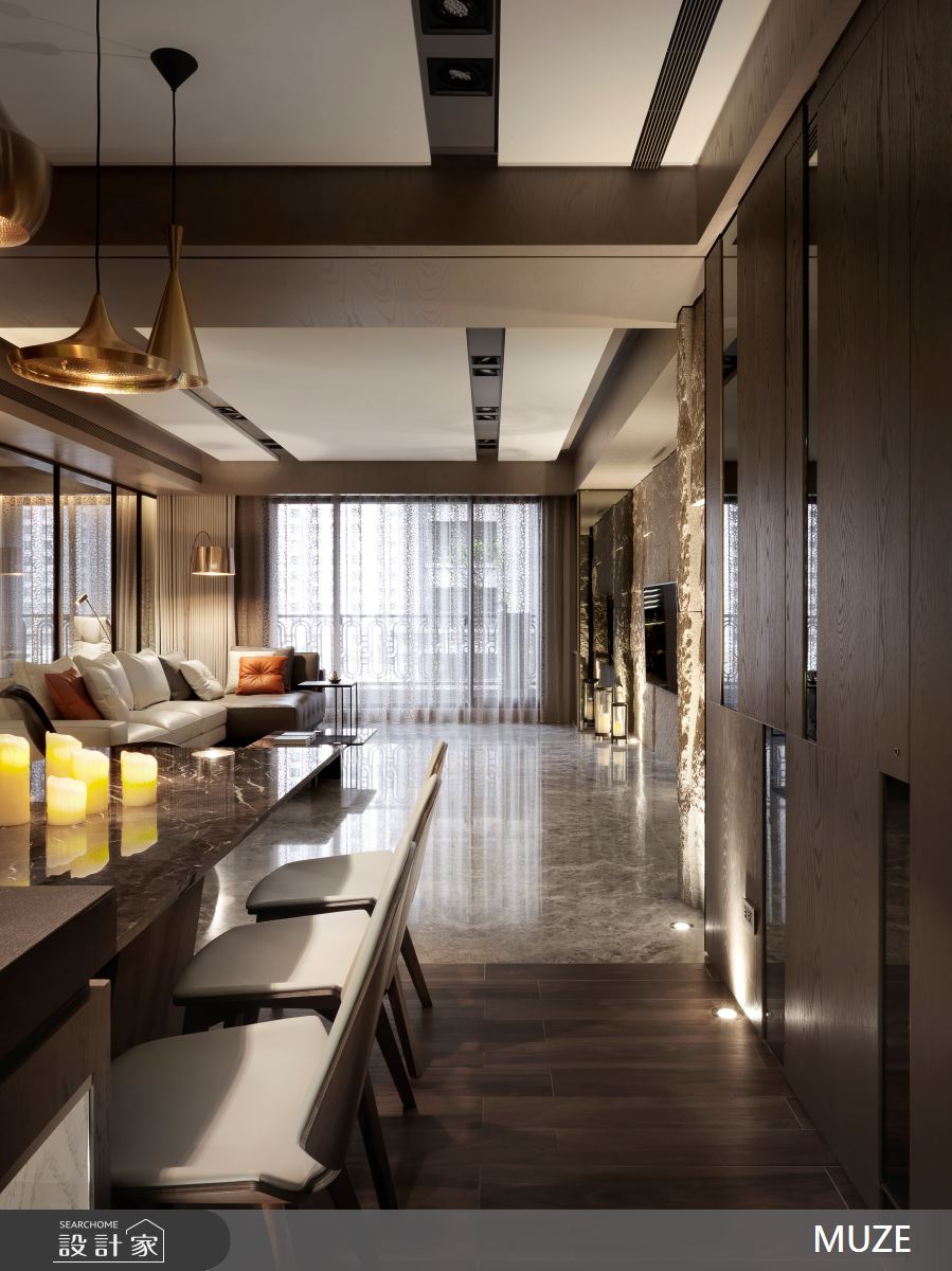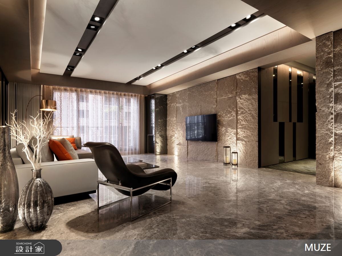 Home Data身為醫師的屋主平常工作相當繁忙,在回家後希望能夠達到完整的放鬆,因此慕澤設計以精品飯店為發想,在空間中利用質感大理石鋪陳磅礡氣勢,其渾然天成的優美紋理,更烘托出迷人的大自然氣息,並且傳遞低調奢華的內斂質感。