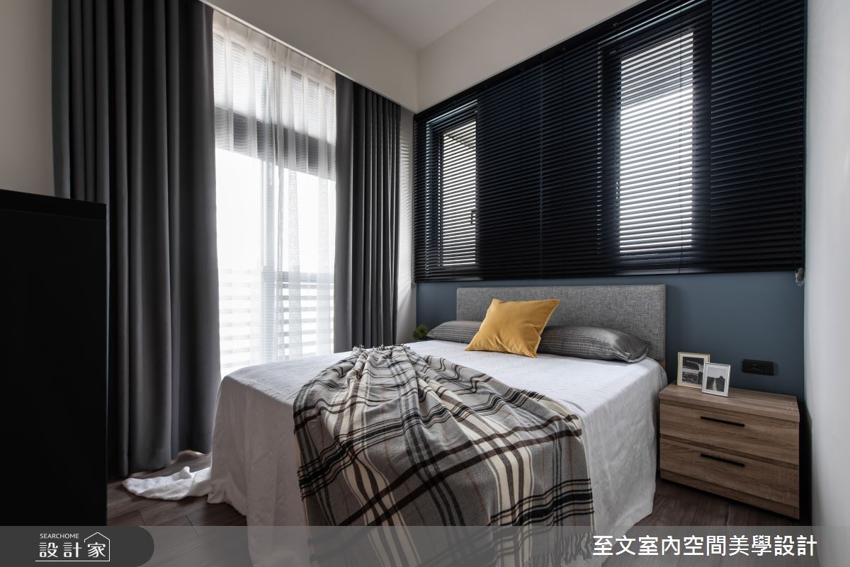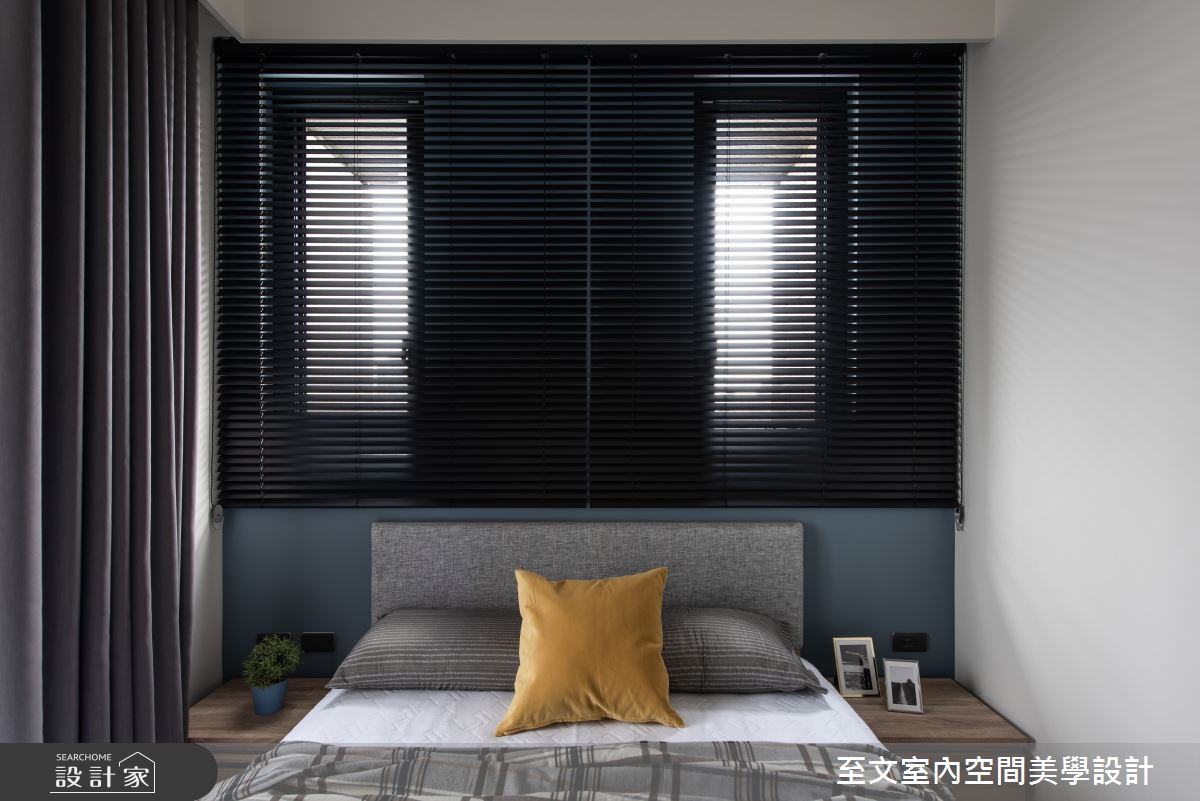 狹長的玄關入口使用了仿石材和鐵件門等不同材質,設置了落塵區;進入公共空間後,客、餐廳開放相鄰,與一區架高的和室區域,同時也能作為客房和收納使用,三個區域串聯後完成了開朗寬闊的區域,便於讓屋主夫妻迎賓宴客;在材質的設定上,鋪上木地板、櫃體貼上木皮,讓北歐溫馨的感受溫暖延續,電視牆選用灰色特殊漆,低調柔和的氛圍自然流露,給人療癒舒適的氛圍。主臥室的採光充足,選用藍色的漆料做為床頭牆面的主色彩,讓主臥更沉穩地安心放鬆休息。