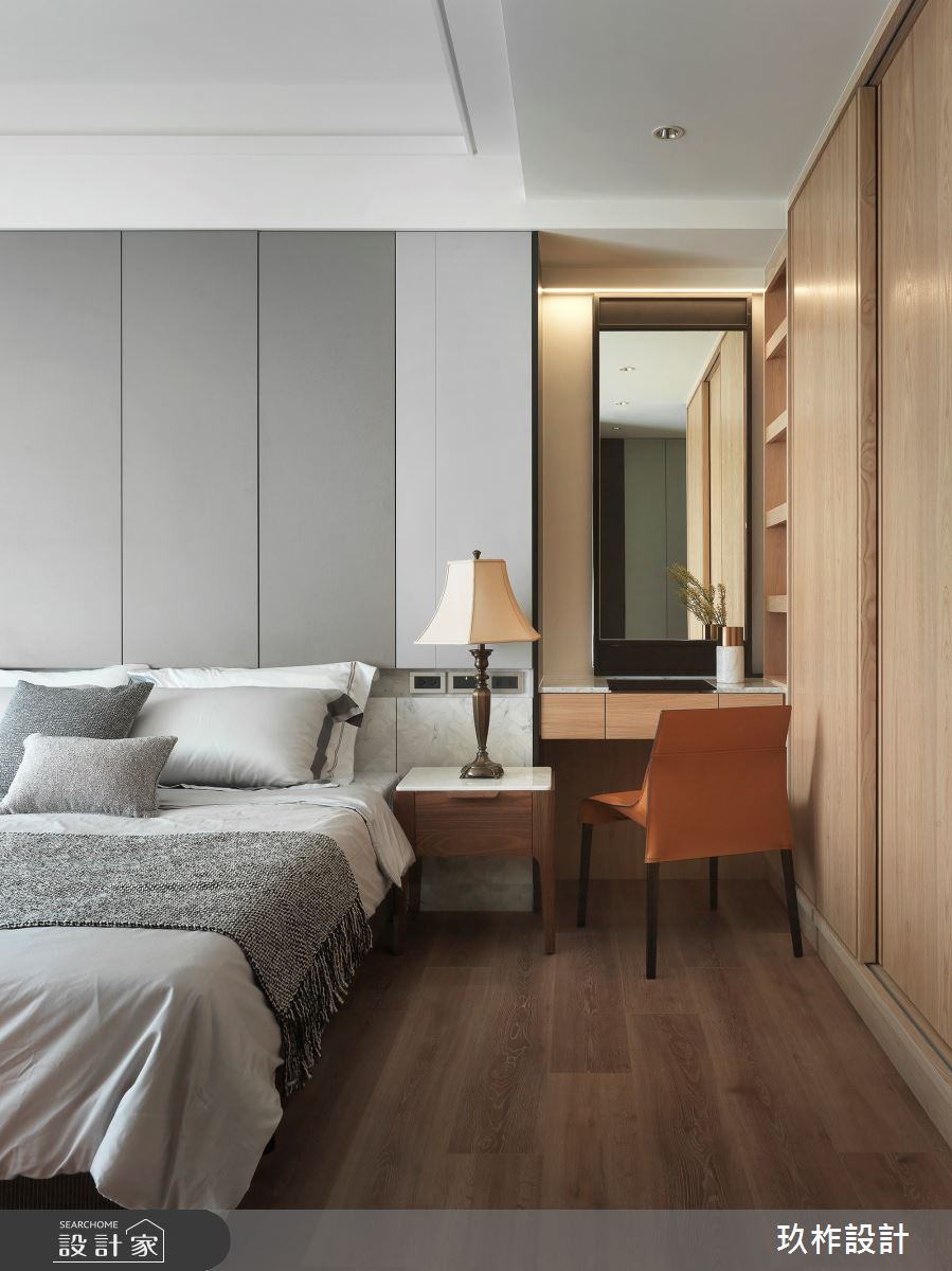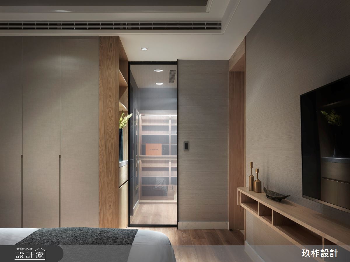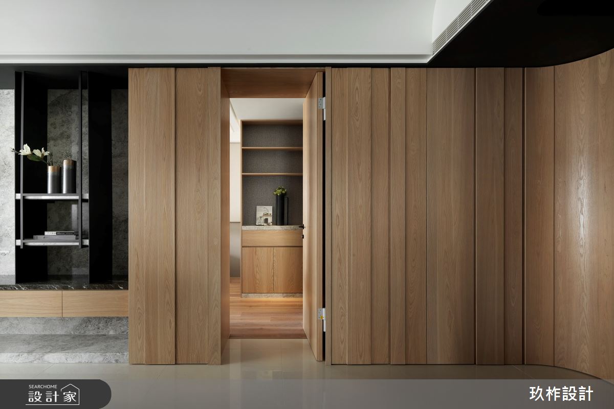 運用隱藏式設計,無論是開放展示架、衣帽收納櫃,抑或是空間出入口,皆與牆面融為一體,化有型於無形之間,詮釋出簡練而富含機能的居家語彙。