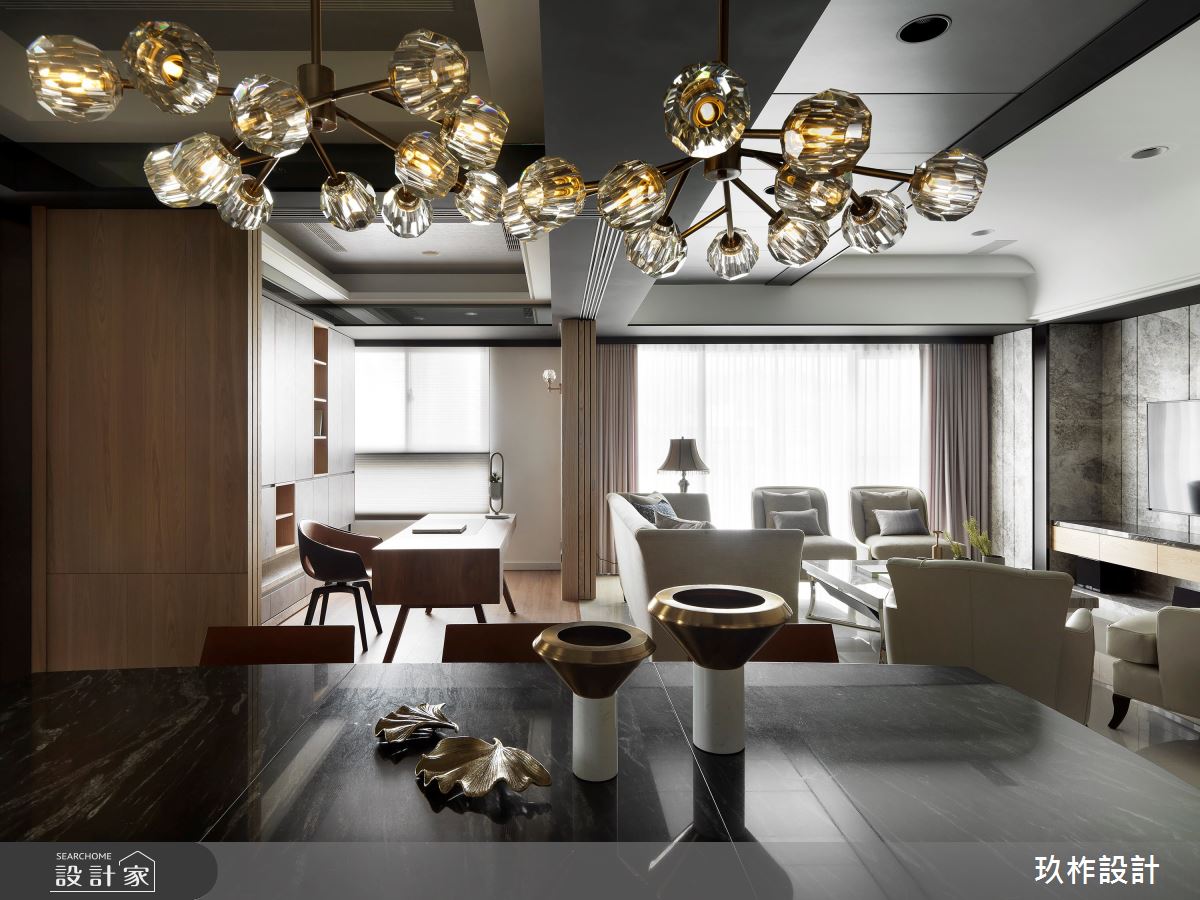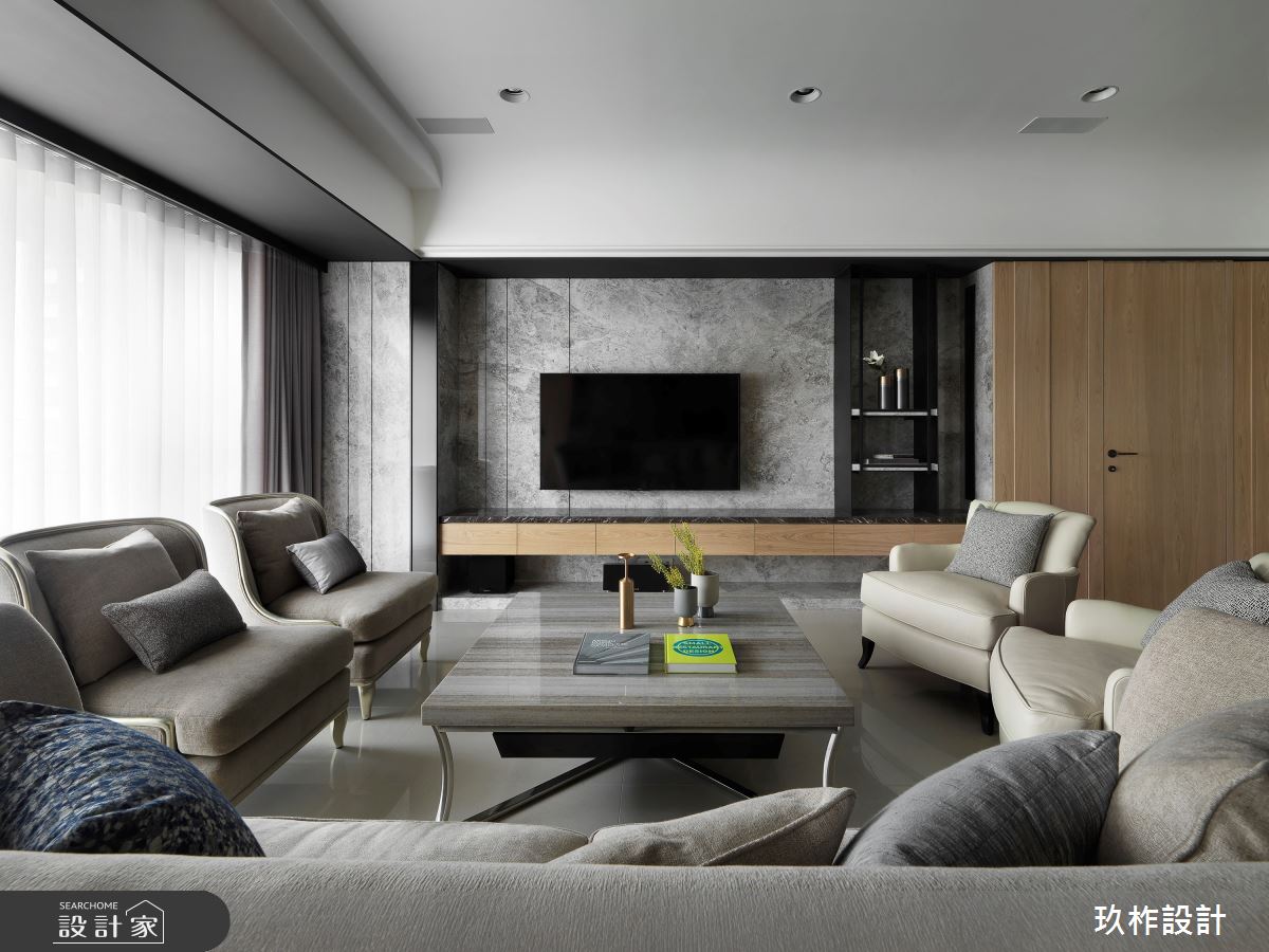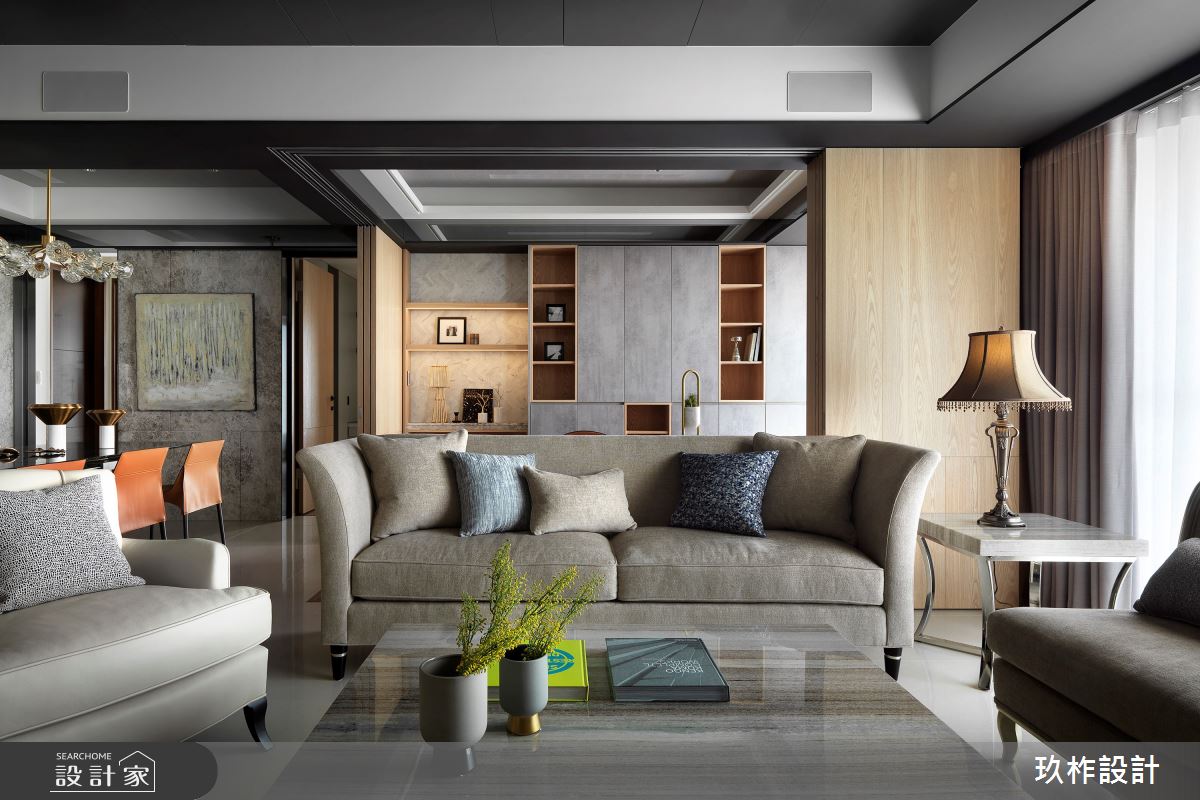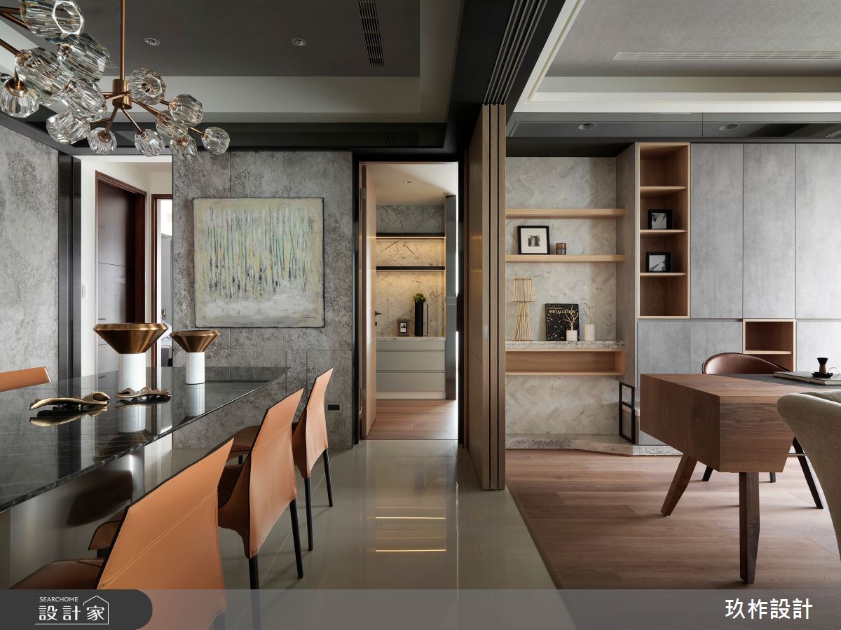 Home Data50坪現代風宅邸,設計師採開放式設計,將客、餐廳、工作區和輕食廚房合而為一,打造寬敞恢宏氣度的第一印象,再輔以天然石材、自然木紋和灰質家飾,屏除過多的色彩與裝飾,為低調奢華的居家場域作出完美詮釋。