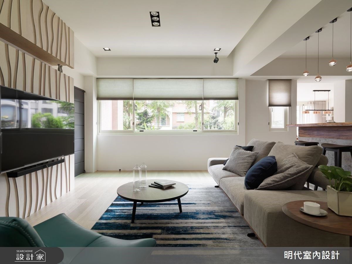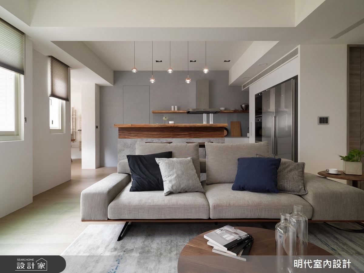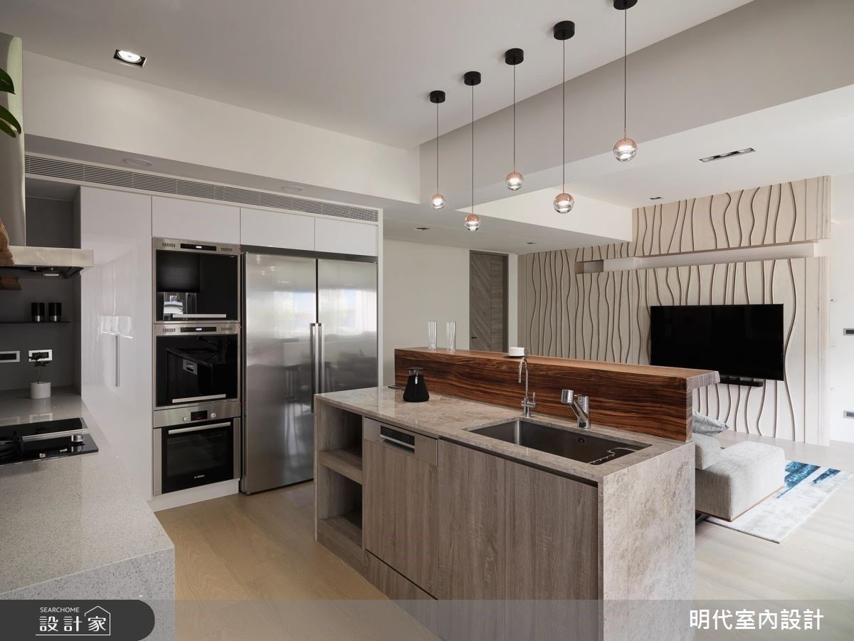 打開格局後,由外而內的引光入室,客餐廚形成開放通透的動線串聯,讓人與光都可以在家中更自由的穿梭。尤其,廚房從原本屋中最不起眼的地帶成為全家的軸心。對現代人而言,廚房已不再只是做菜料理的地方,更是可以帶動團聚期盼,凝聚家人情感的象徵。女主人是全職的家庭主婦,大而明亮的廚房,讓她能悠哉引導家人一起下廚,凝聚無法取代的親子情感交流。中島吧檯略為阻擋入門見灶的忌諱,上方高低錯落的燈具,活潑的畫面分割,營造入門的聚焦視覺。