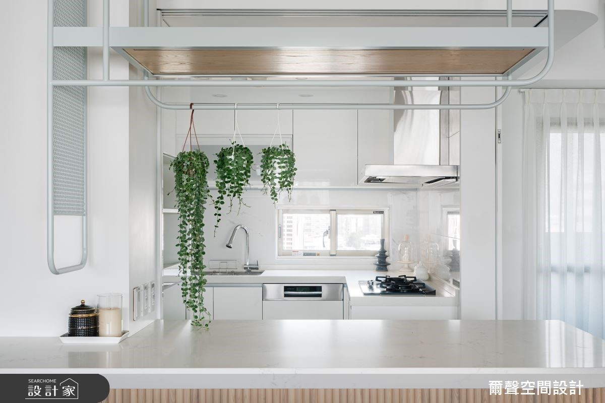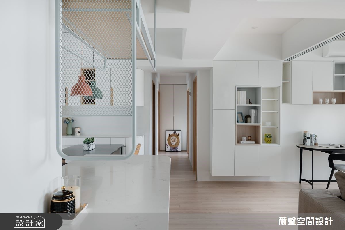 位於角間已逾十年的屋子,白天不需要開燈,就擁有極充沛的採光,只是原始封閉的隔間,阻擋了光線在空間中的自在流動。爾聲空間設計的陳榮聲 Edwin Chen、林欣璇 Linda Lin,以不更動格局,只拆除牆面並替換穿透感更佳的材質的手法,打開密閉的廚房與多功能室,讓客餐廚相鄰成為同一個開放區塊,略為內縮的多功能室改以拉門圍塑,原本狹長較暗的廊道獲得解放,雙邊採光可以更自在的互通有無。並以清淺色彩取代原有深沉厚重的木色,翻新成為淡雅明亮的北歐家屋。