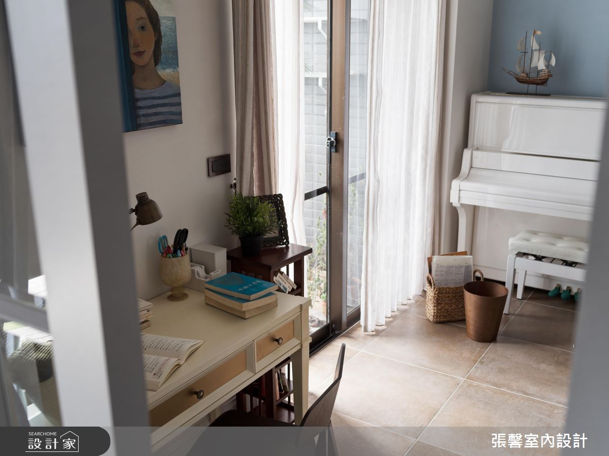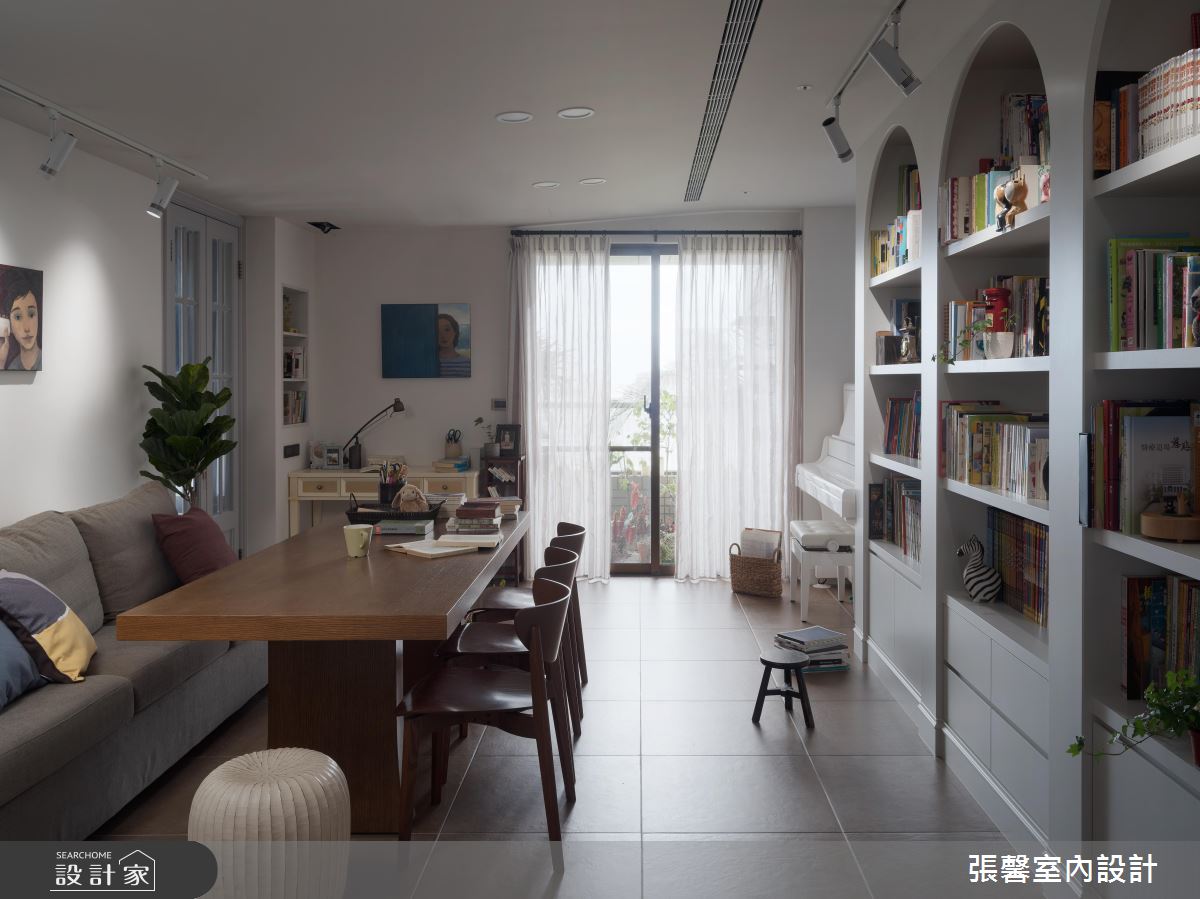 書房除了閱讀,也兼具練琴室的功能,空間裡打造可容納全家人的書桌及大書櫃,除了強化實用機能,將設計感降到最低的手法,讓家人的互動生活躍升為空間重點。