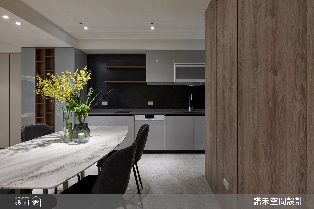 Home Data長期在異國打拼的遊子決定帶著成功的事業回台灣定居,諾禾設計試圖在對話中找尋屬於遊子的家鄉記憶,並連結旅居海外的生活習慣,在這個35坪的宅邸中完成了專屬屋主態度的自在生活。