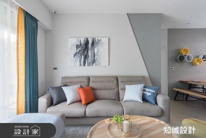 年輕的屋主愛上北歐風,對家的想望要有清爽自然的色調,但也賦予生鮮活潑的氣息,為孩子的誕生預留猶有童趣的小房,以及為男主人打點一間好讀的書房。此案即透過幾何線條,呈現紓壓愜意的色彩空間,同時和家具軟件灑落點點艷彩相映成趣。
