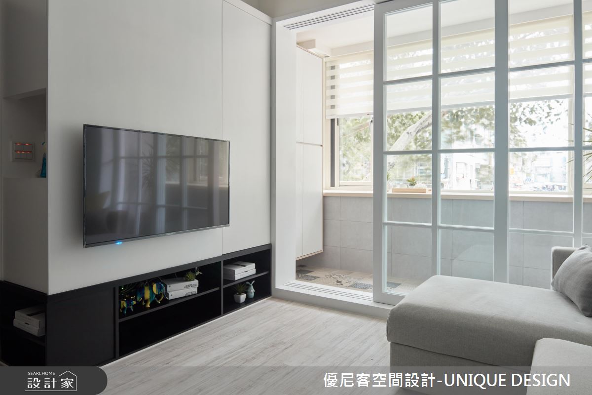 格局方面,則經由設計師的重新規劃與空間分配,將小坪數的坪效發揮到最大;針對管線老舊、動線及隔間不符合使用者需求的問題,選擇將3房更改為2房,藉此放大公共空間與餐廳的範圍,並在客廳沙發牆刷上清新的粉藍,帶出輕盈的牆面表情,餐廳則安排大面積的黑板牆,形成趣味的塗鴉留言板,讓居住空間被滿滿的人文氣息所感染;臥房內,以明淨的色調創造開闊感,並運用大面積的留白,弱化格局的不規則,同時搭配輕巧的牆面裝飾,製造鮮明視覺亮點!