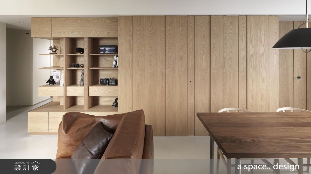 35 坪老屋翻修後,即將成為 6 人同住的三代同堂宅,因此空間以耐看簡練的純淨白色作為北歐風基底,適度留白卻不顯空蕩,反而凸顯了木質家具、皮質沙發、開放式木質收納櫃等家具特色,即便生活中僅有木與白兩色點綴,也能打造舒服有層次的生活美感。