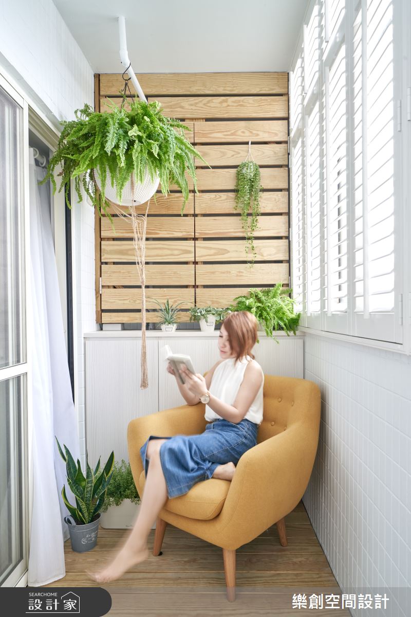 原本陰暗的陽台空間,運用顏色與建材的變化,搭配一張鮮豔的單椅便成為令人嚮往的北歐風小角落,很適合想要局部改造的家裡參考。