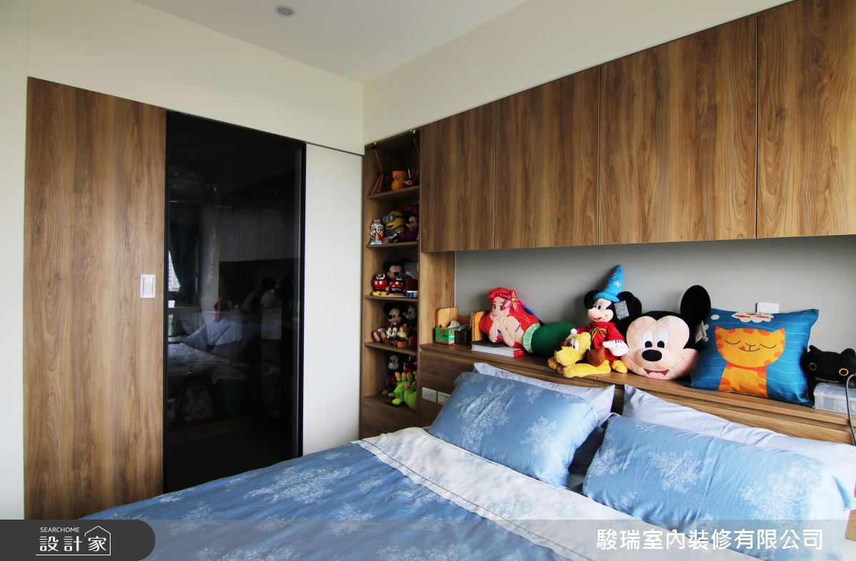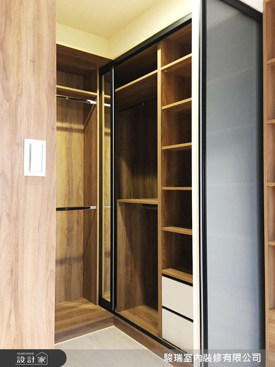 主臥床頭以整排客製化收納櫃體挹注私領域收納空間,靠窗採光佳處臥榻設計,給屋主一處私密又放鬆的小角落,並串聯小書桌打造一體成形設計,有效發揮坪數,帶來實用舒適的生活。