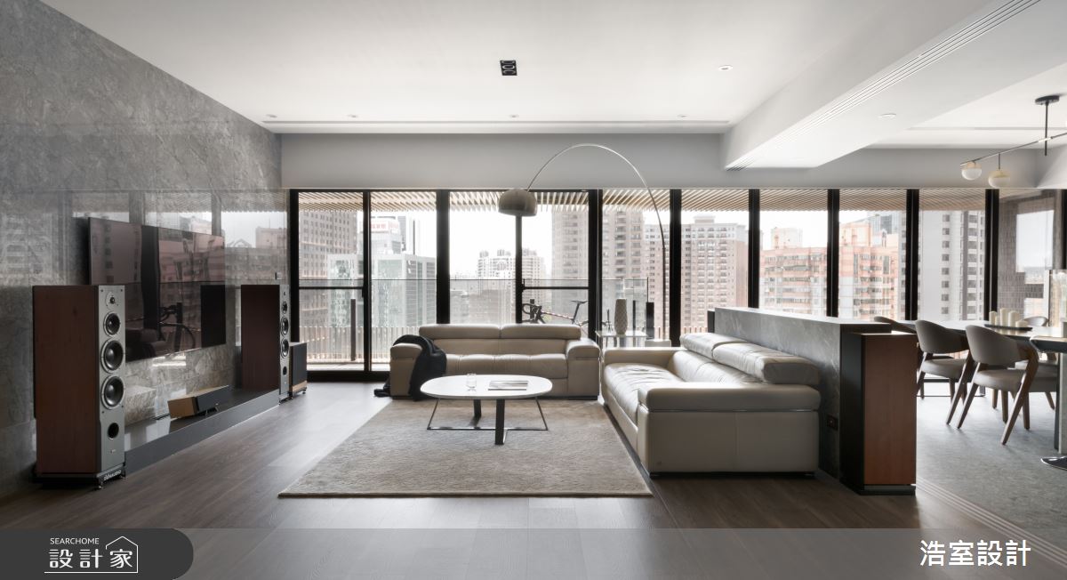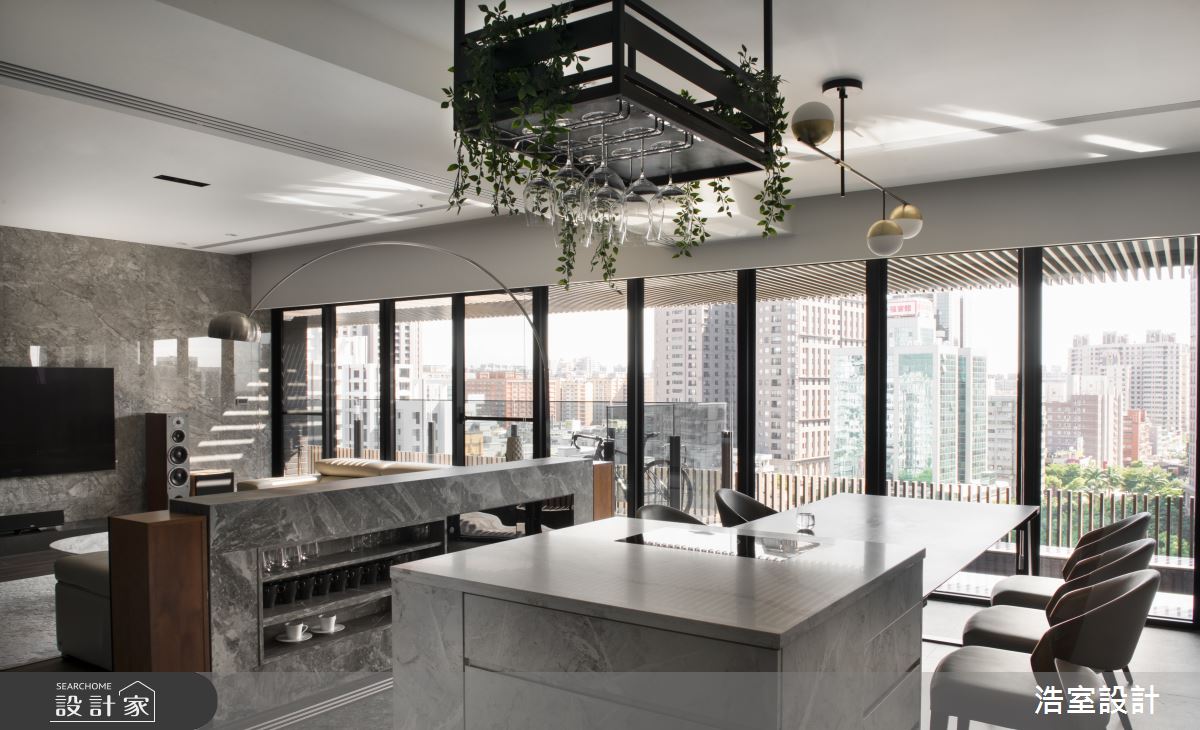 Home Data百坪大宅裡,透過俐落的現代風格描繪,且將城市風景延攬入室,展現開闊器度;半開放大型廚房滿足夢想中三五好友共聚的天堂,以及收納細節的規劃,收藏起一家五口的非凡品味與點滴回憶。