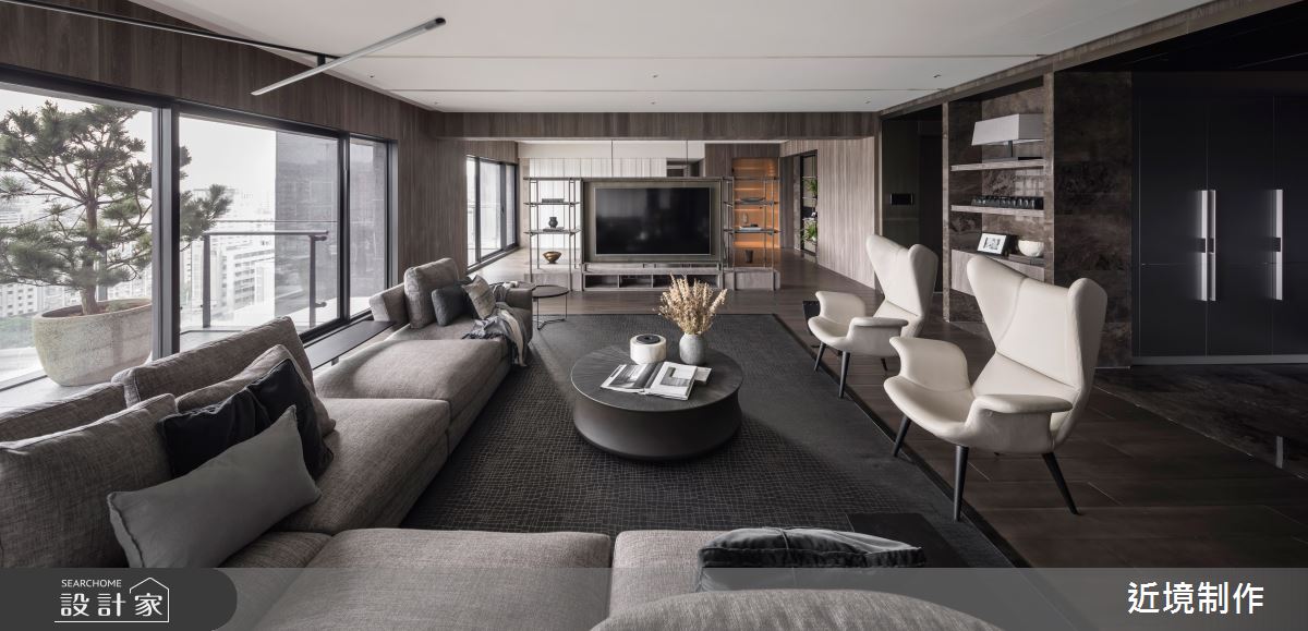 Home Data80 坪大宅,設計師將「生活的溫度」視為全案主軸,在空間布局上,以一道電視主牆發散出各種場域情境的軸線安排,並在開放場域中強調客餐廳關係的連結,快跟著小編一起來看看吧!