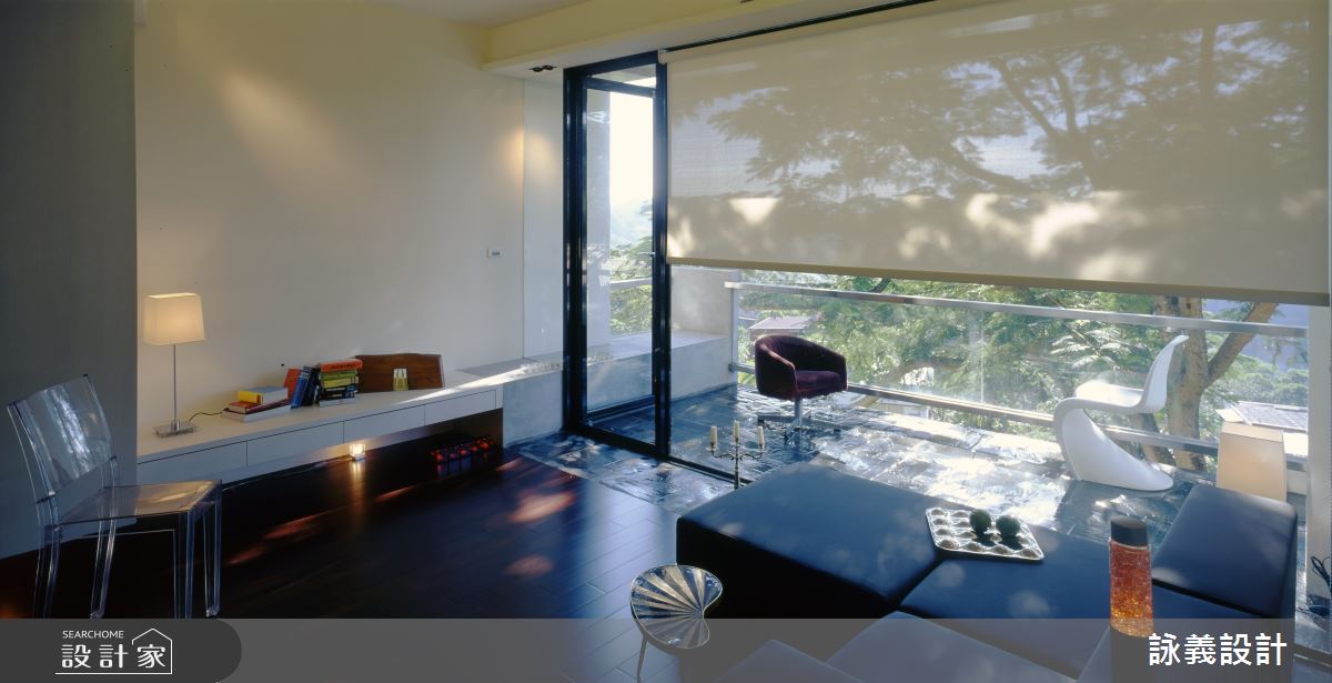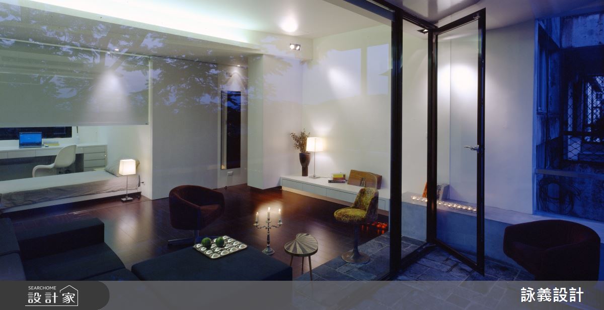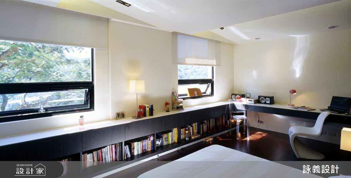 公領域引用大面積玻璃窗,將外部風景穿透入室,串聯陽台與客廳的關係,不僅引導了光線,也讓婆娑樹影形成房子中的絕佳裝飾,隨著時序更迭、呈現無矯飾的優美光景,地面則刻意模糊交界,讓陽台地板材質局部延伸入室,與木地板形成銜接,串聯裡外疆界;書房內,為了讓空間看來更方正與寬闊,選擇將矮櫃沿著動線而設,並與長型書桌相連結,構成環繞式的居家圖書館,藉由壁色的大面積裸露,避免櫃面高度造成視覺壓迫,讓空間看起來更顯清爽無壓!