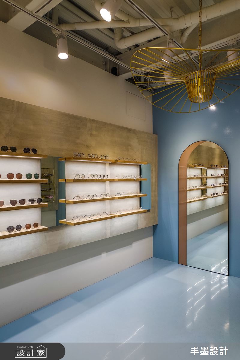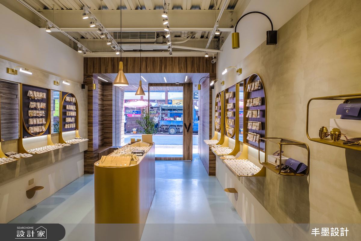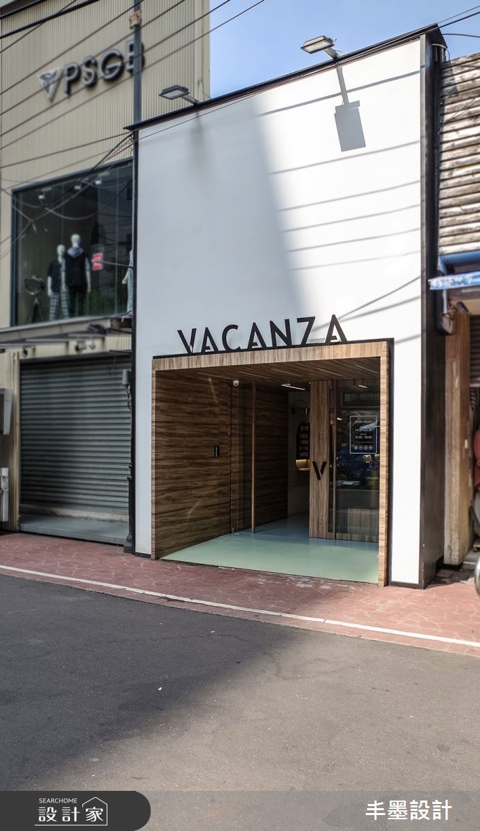 「VACANZA」品牌期許可帶給顧客度假般的自由氣息,從飾品內找到自信與生活發想,此次位於台中逢甲夜市內的店面,丰墨設計以線條俐落感及不同材質的變化來呈現:空間外觀以白底黑線為主視覺,搭配入口木紋ㄇ形通道,與店面外逢甲夜市的熱鬧人潮做個反差的對比,水藍色 Epoxy 地坪由入口的斜坡進入店面延伸至最尾端的牆面,搭配拱門形的鏡子,作為視覺引導。而兩旁漂浮的樂土灰泥牆面則再加強視覺延伸感。櫃台用木紋水泥板及金屬方管構成,搭配實木貼皮的 Logo 牆,設置在整個空間的中段,將空間區分兩部份,作為不同商品的分區陳列。每個展示區的設計元素則以機能做考量,用來區分與放置耳環、項鍊、髮帶、眼鏡等不同商品。