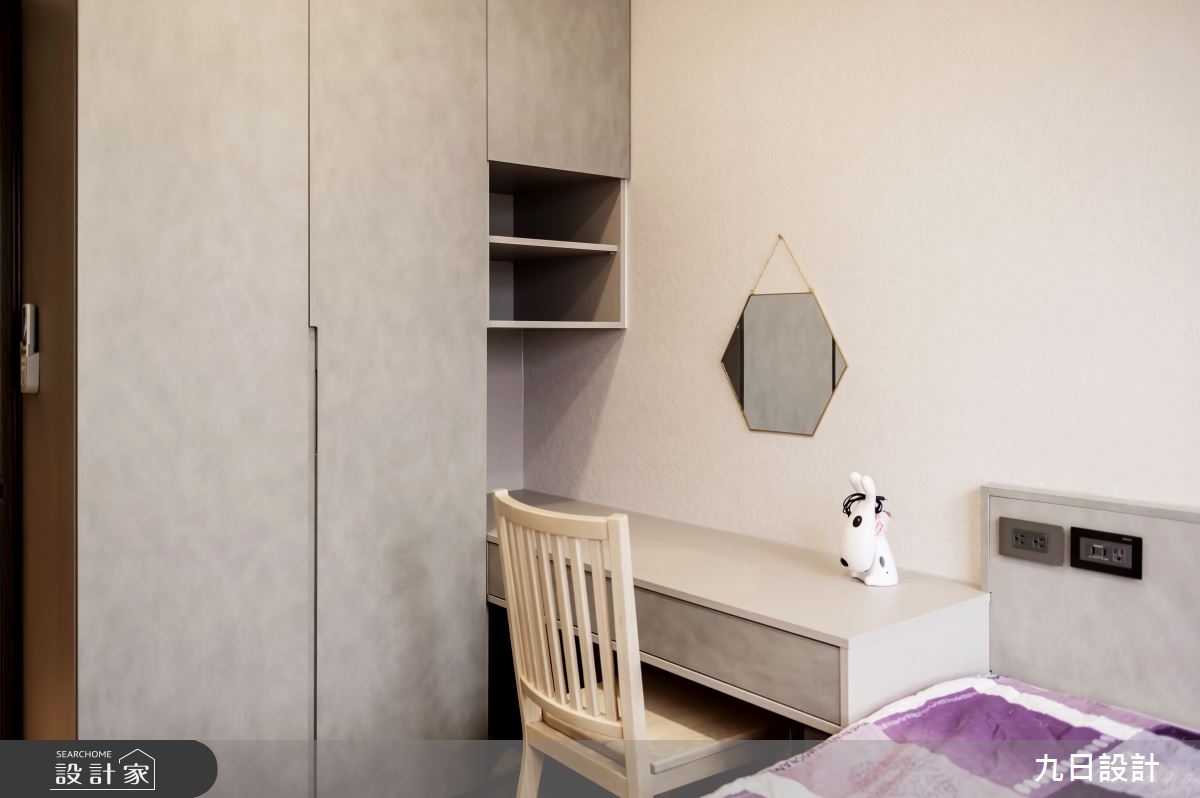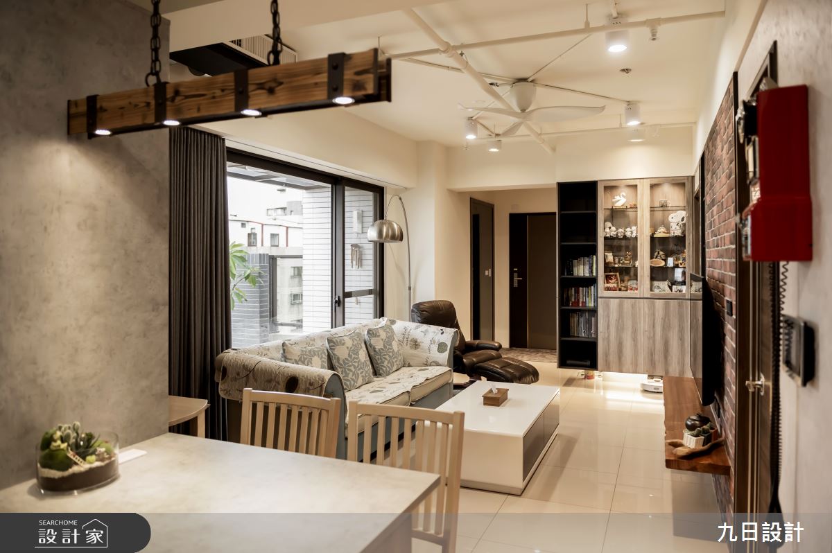 因客、餐廳格局較為狹長,為了把握大面窗景和採光,以開放式設計,釋放公領域的居家視野,整體更加寬敞通透,並適度地以櫃體作為橫屏,界定區域分野。混搭自然木紋與水泥質地,輕巧鋪陳粗獷而隨性的工業風,天花板則注入純白色系,結合吊扇和裸露的管線設計提升明亮感,更刻劃出溫暖舒適的氛圍。客廳紅磚牆面搭配立燈、Lounge Chair,描繪復古而放鬆的樣貌,讓熱情好客的屋主不時能與三五好友微醺小聚,創造出專屬都會女子的快意生活。