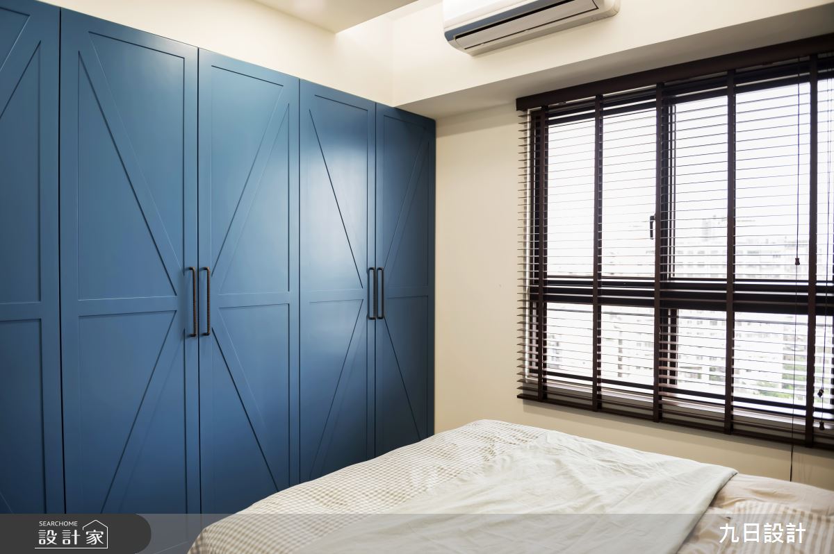 走入臥房,藍色穀倉門衣櫃令人耳目一新,注入一股明快活力,搭配俐落的金屬把手,詮釋出鮮明的個性語彙。