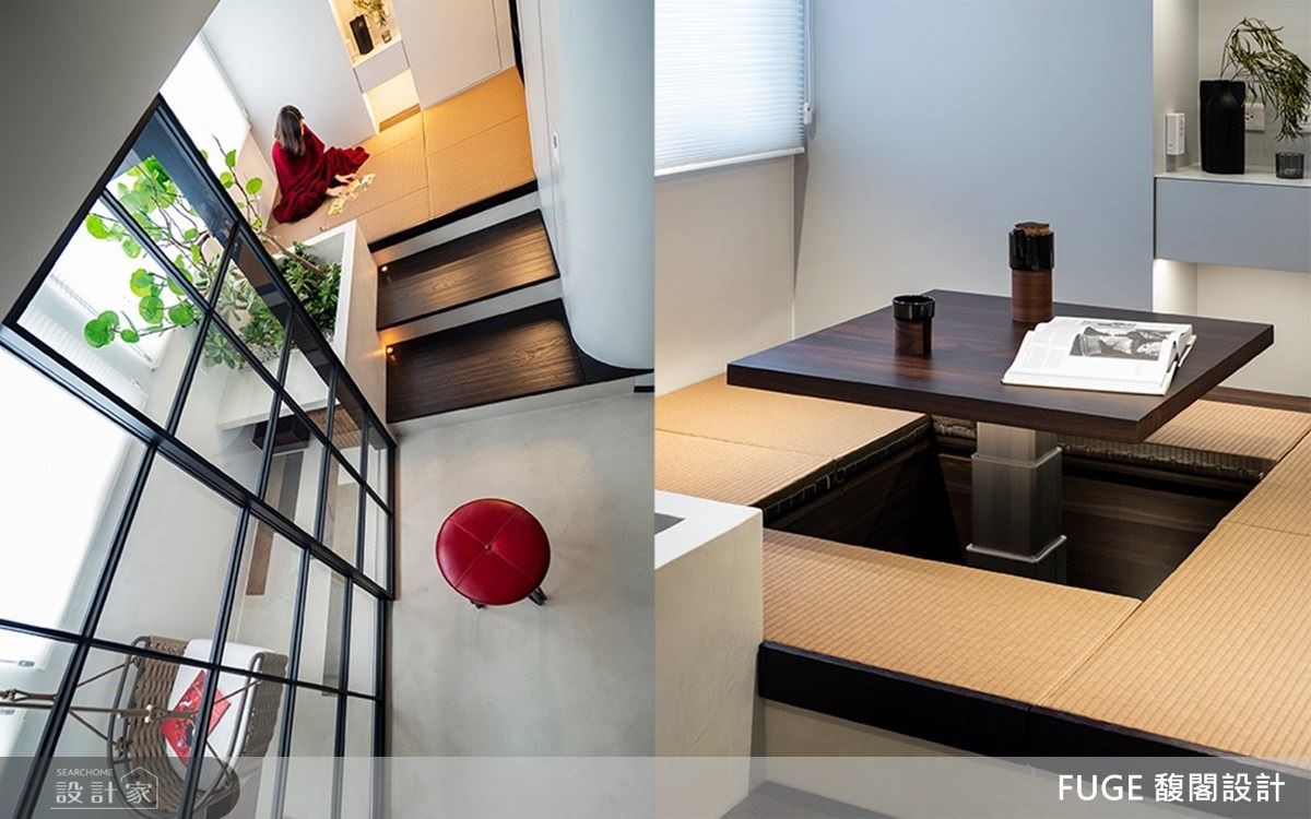 馥閣設計的黃鈴芳總監在與唐老師多次深聊後,掌握她對於居家渴望的安定性與工作必須的社交性兩大主軸,在私領域的設計上以和室、小半樓穴居以及室內陽台建構出能安靜獨處又能熱絡交流的串聯關係。不同形式的個人空間,提供長時間在家的唐老師能隨居家情境轉換心境。