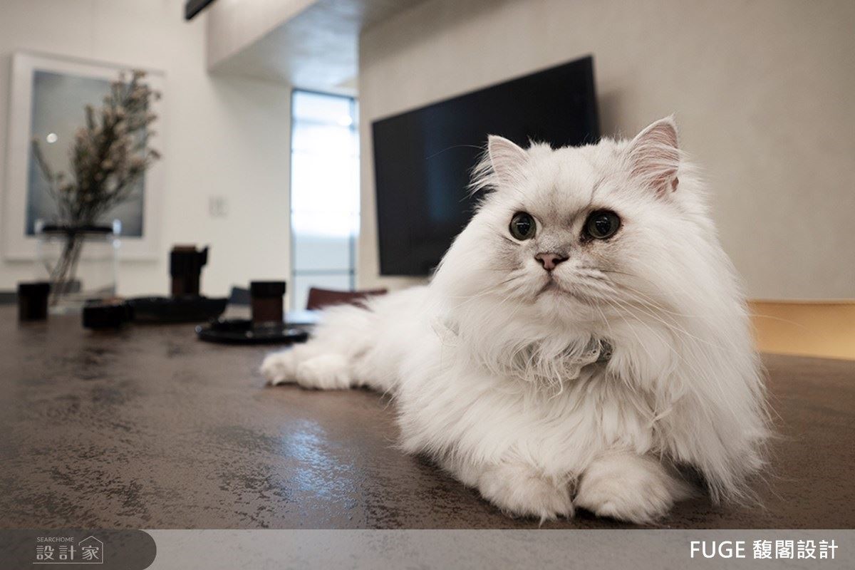 重整格局後原本被區隔於不同臥室的小窗子在視覺上有了串連,藉以形塑出相對大面積的光感,內部也頓時明亮了起來。除了由玄關通往內部的廊道做了弧形設計,直播長桌面對的電視牆、以及更往內部延伸的寢居空間,都將銳利的轉角帶入了親切的圓弧。曲線在略為冷調的空間中創造了柔美意象,無形間影響了居住者的情緒,讓身為公眾人物的她能卸下心防,享受更人性化的舒適居所。