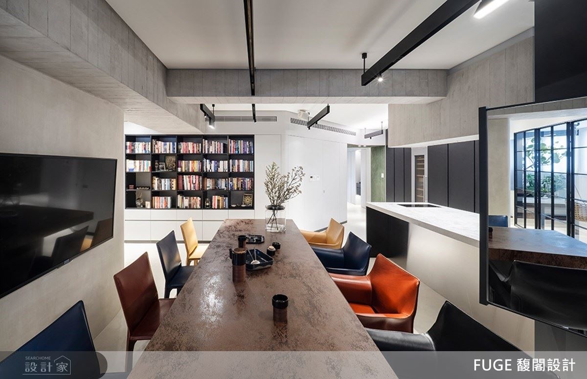 另一方面,在家具配置上也能洞悉色彩與材質的巧思,像是直播長桌排列的8張Cassina單椅選擇了接近礦物的質樸顏色,呼應地板以及牆面的礦物塗料;帶著金屬鏽蝕質感的薄磚餐桌也順應著自然礦質主題,讓植入的色彩顯得自然合理。設計師在居住者最無壓力的狀態下進行空間變化,設計成果除了能契合其自身性格,更讓空間引領使用者活出最自在的模樣。