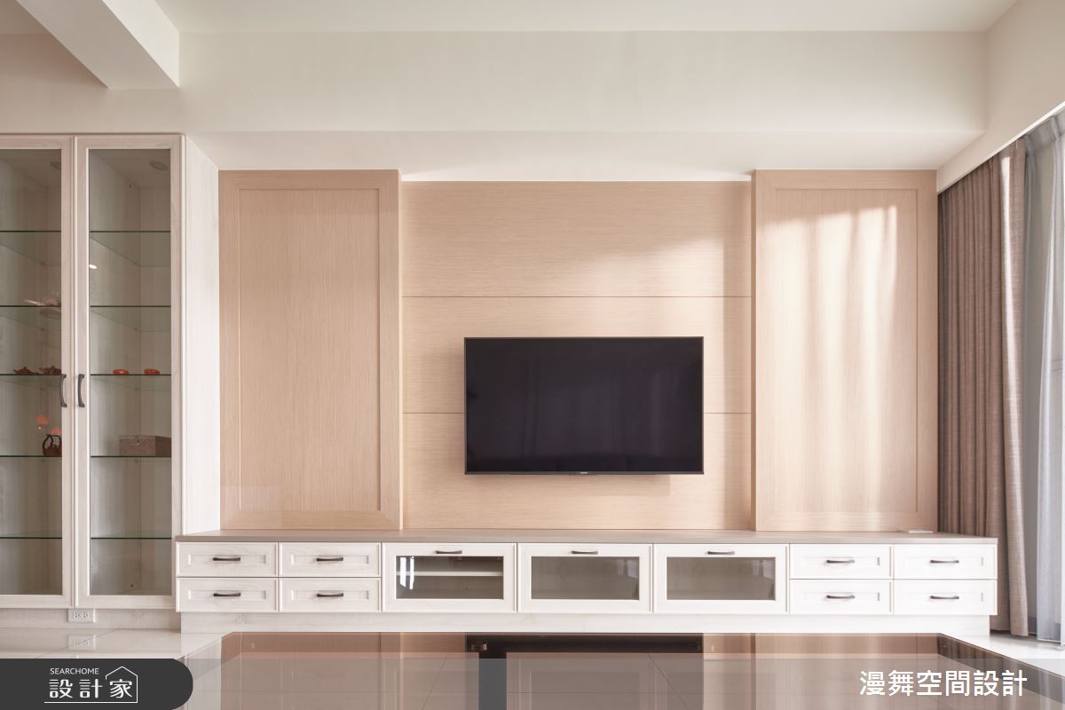 因神明廳需位於客廳區,與玄關有衝突性,於是規畫屏風做區隔,不僅打造出入口端景,也劃出神明廳的區隔界定;並拆除原先隔局,轉化隔間牆位置,創造出新的餐廳領域,再於餐廳內增設餐櫃增強機能性;主臥房做為兒子日後的新婚房使用,加入了大容量的櫃體功能,並增加更衣間,滿足女主人的收納需求;次臥房則是媽媽房,以簡單素雅為原則,配置必要生活機能,更符合長輩的喜好!