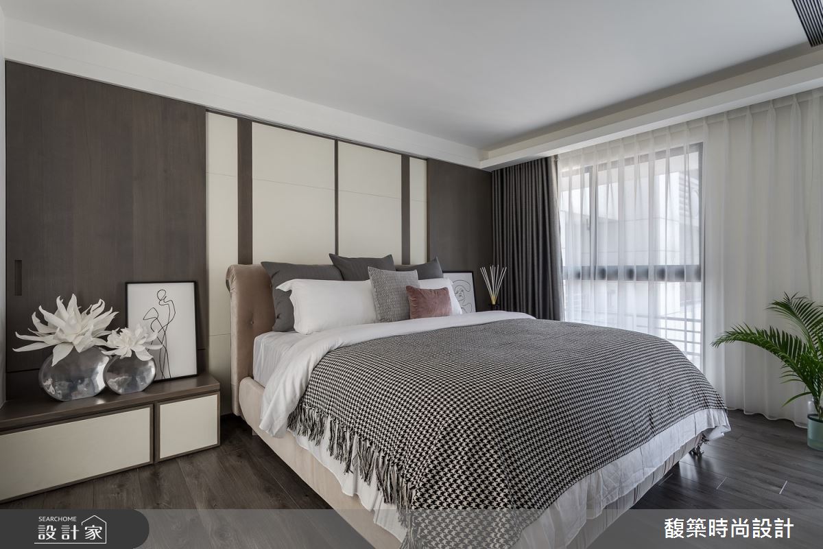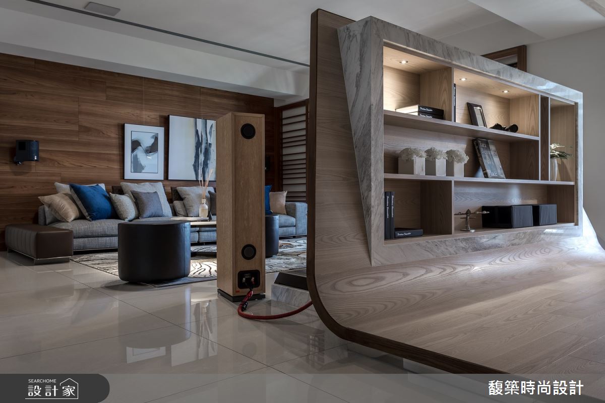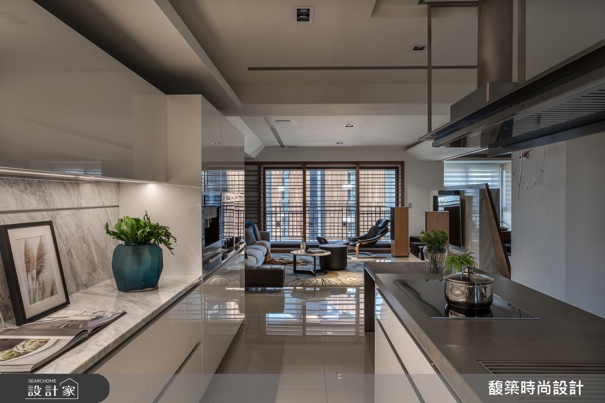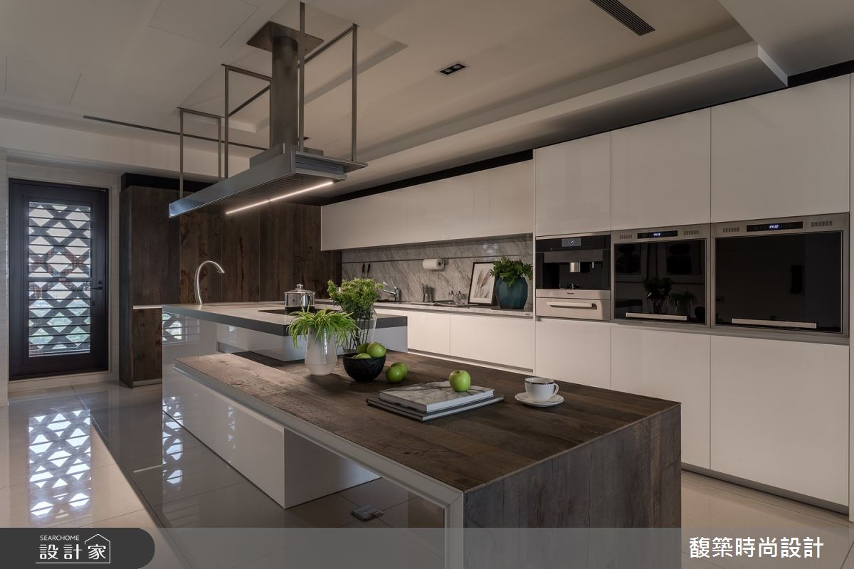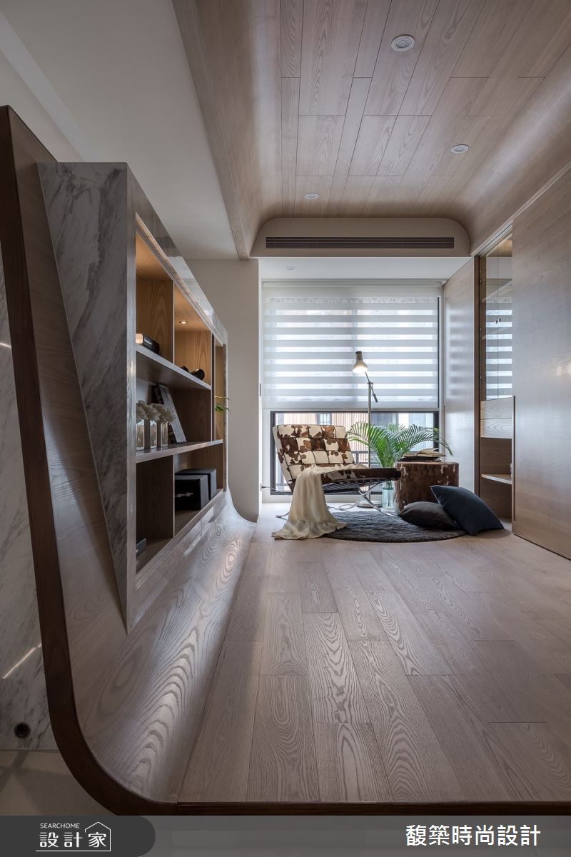 客廳以木格柵取代百葉,將戶外景致移植入室,促成內外景色的美好連結,客廳則配置大理石電視牆,與後方弧形木板相連結,向背後延伸出一處多功能區,形塑具包覆感的多功能空間,與客廳彼此區隔、卻又形成一定的互動;餐廚區域,配置淺白色的廚具設配,展現俐落精緻感,且將中島串聯木餐桌,打造實用美觀的聚餐領域;私領域,承襲溫潤沉靜的木元素,於床頭鋪敘沉穩木紋,再利用電視牆位置擘劃回字動線,兼顧梳妝、閱讀、睡眠等主題,區劃出每個實用區塊!