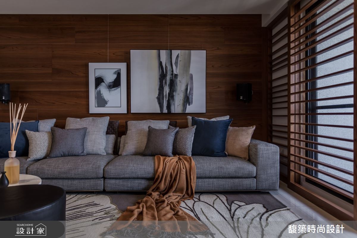 設計師引用自然素材,將木紋搭接石材,為居家挹注休閒氣韻,使屋主一家可時刻與好景相伴,享受都會中難能可貴的放鬆體驗!